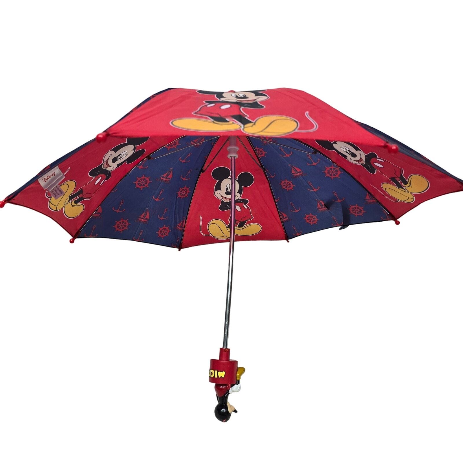 Disney Mickey Mouse Umbrella 3D Figure Handle Kids Girls Boys Nautical Red Blue