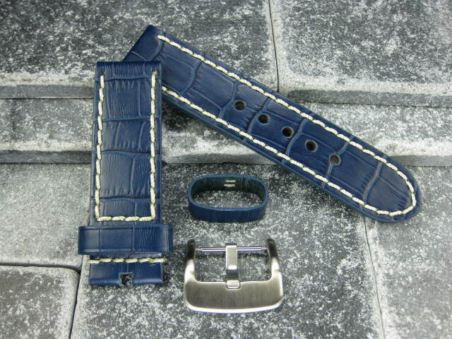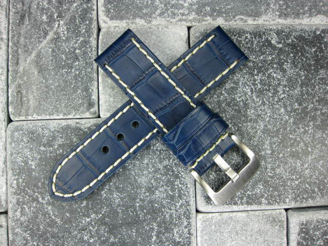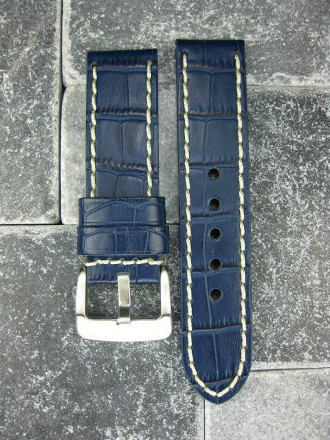 New 20mm BIG CROCO Leather Strap Blue Watch Band Belt White for BREITLING B