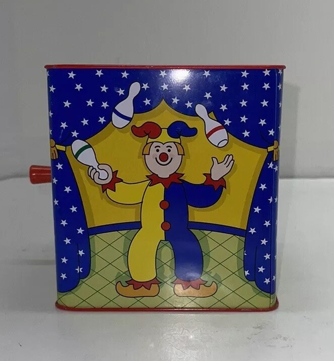 Schylling 1997 Tin Musical Wind Up Jack in the Box Circus Clown Jester