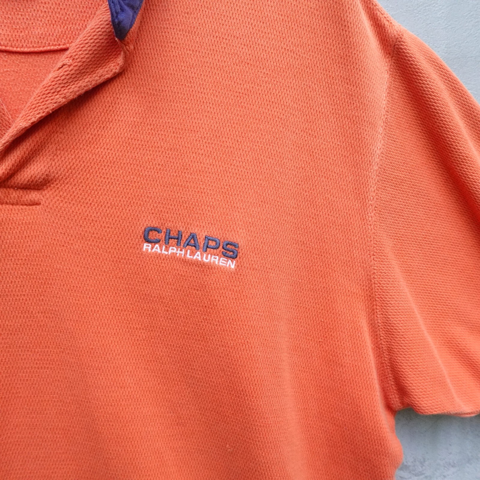 как выглядит Vintage Chaps Ralph Lauren Mens Polo Shirt Med Cotton Orange Ribbed Preppy READ фото
