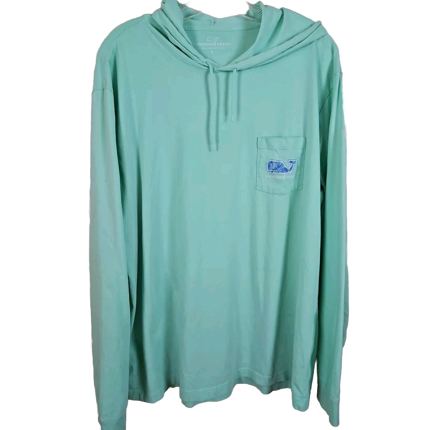 как выглядит Vineyard Vines hooded Mens Large Green Whale Outdoor Pocket T Hoodie Lightweight фото