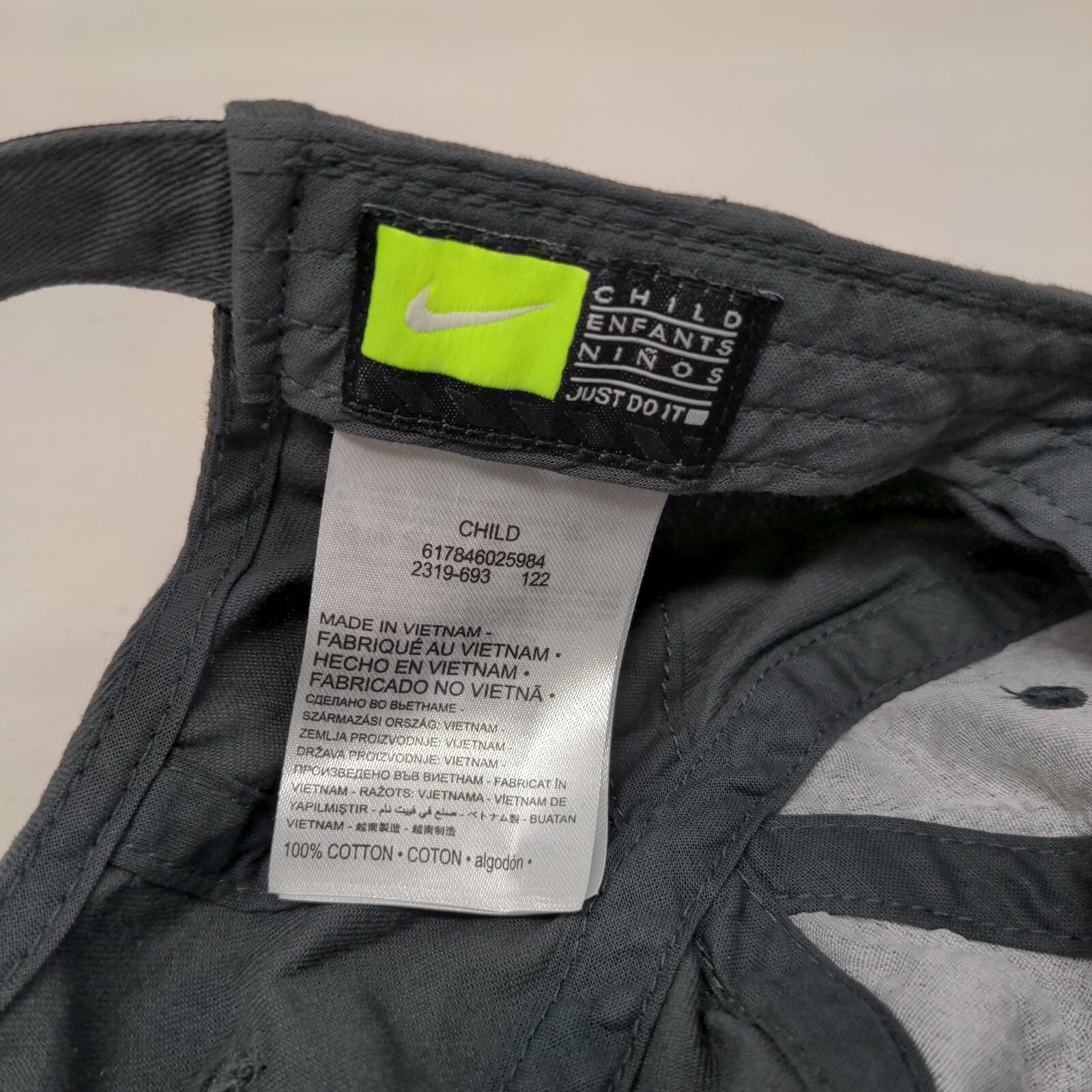 Nike Child Strapback Hat Gray One Size Embroidered Swoosh Logo Just Do It