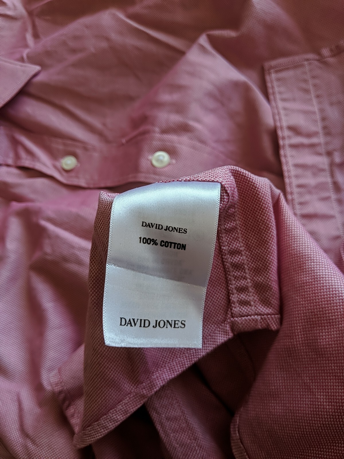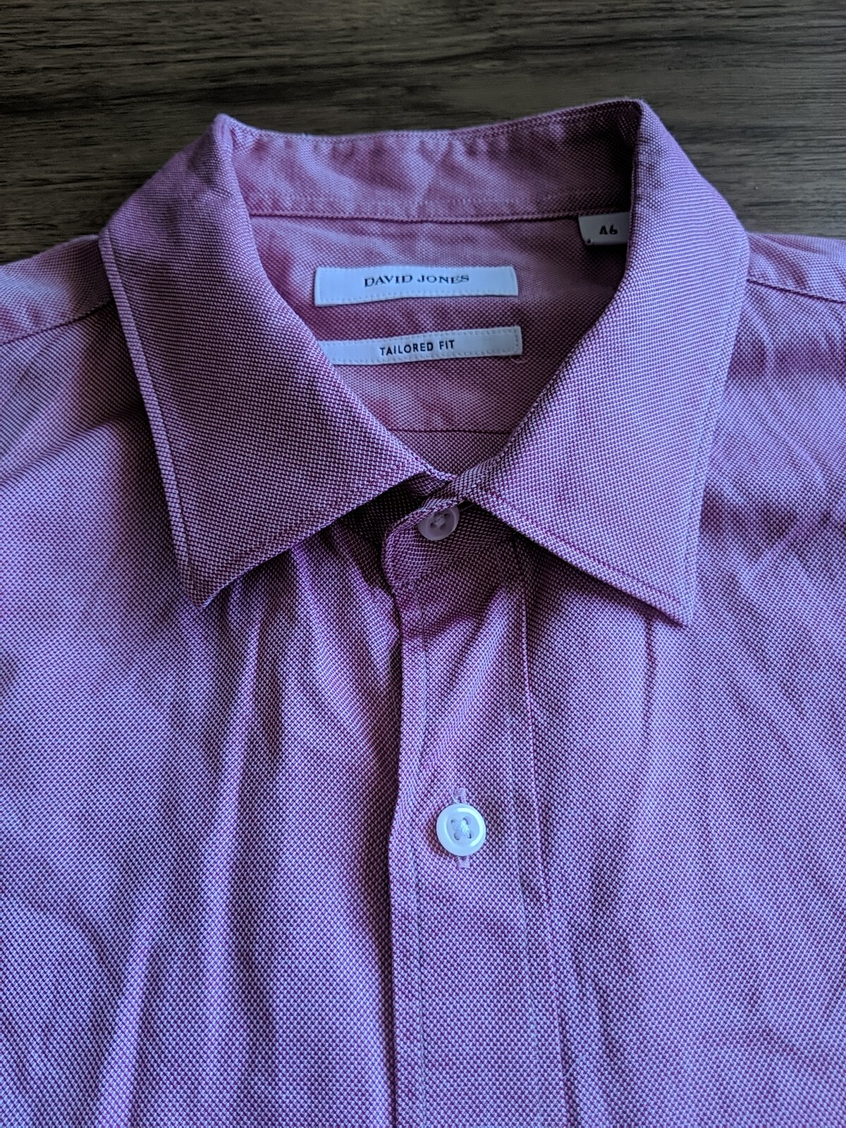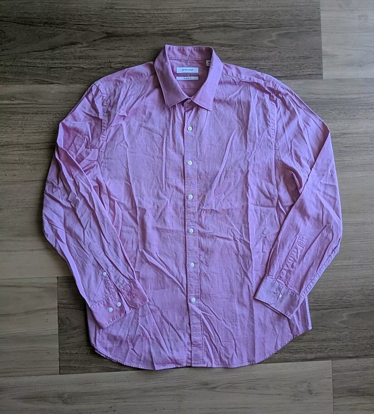как выглядит David Jones Button Up Long Sleeve Shirt 46 Large Pink Tailored Fit фото