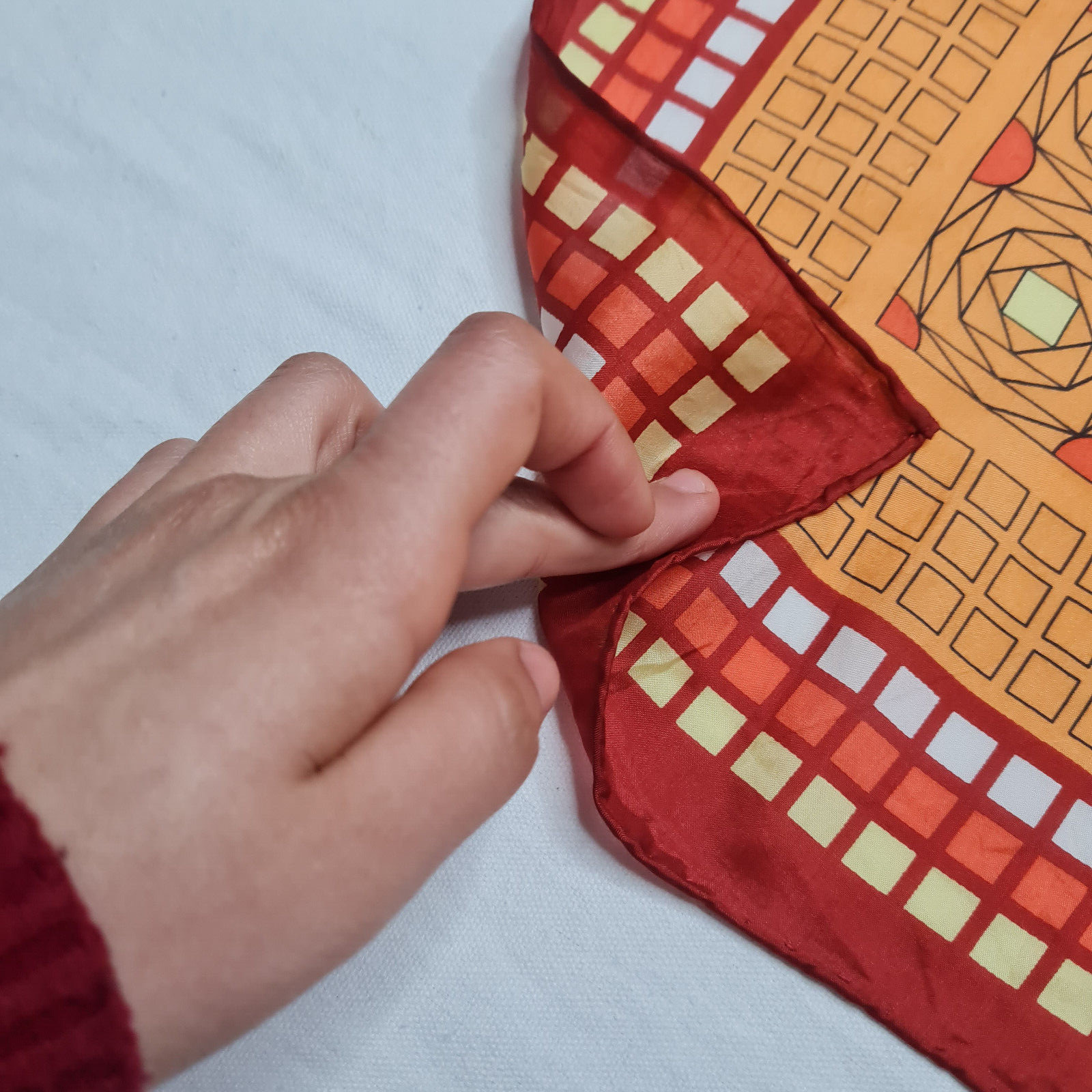VINTAGE LUXURIOUS AUTHENTIC SILK POCKET SCARF NECKERCHIEF HAND ROLLED ORANGE RED