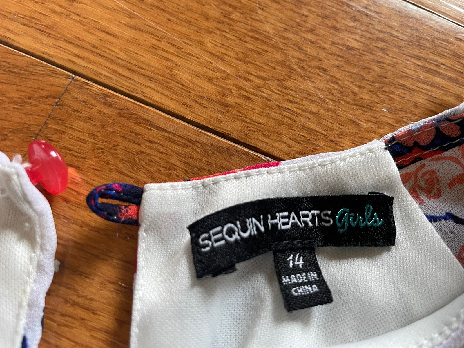 86 Girls Sequin Hearts Maxi Dress Floral Size 14 Cruise Wedding Dance School