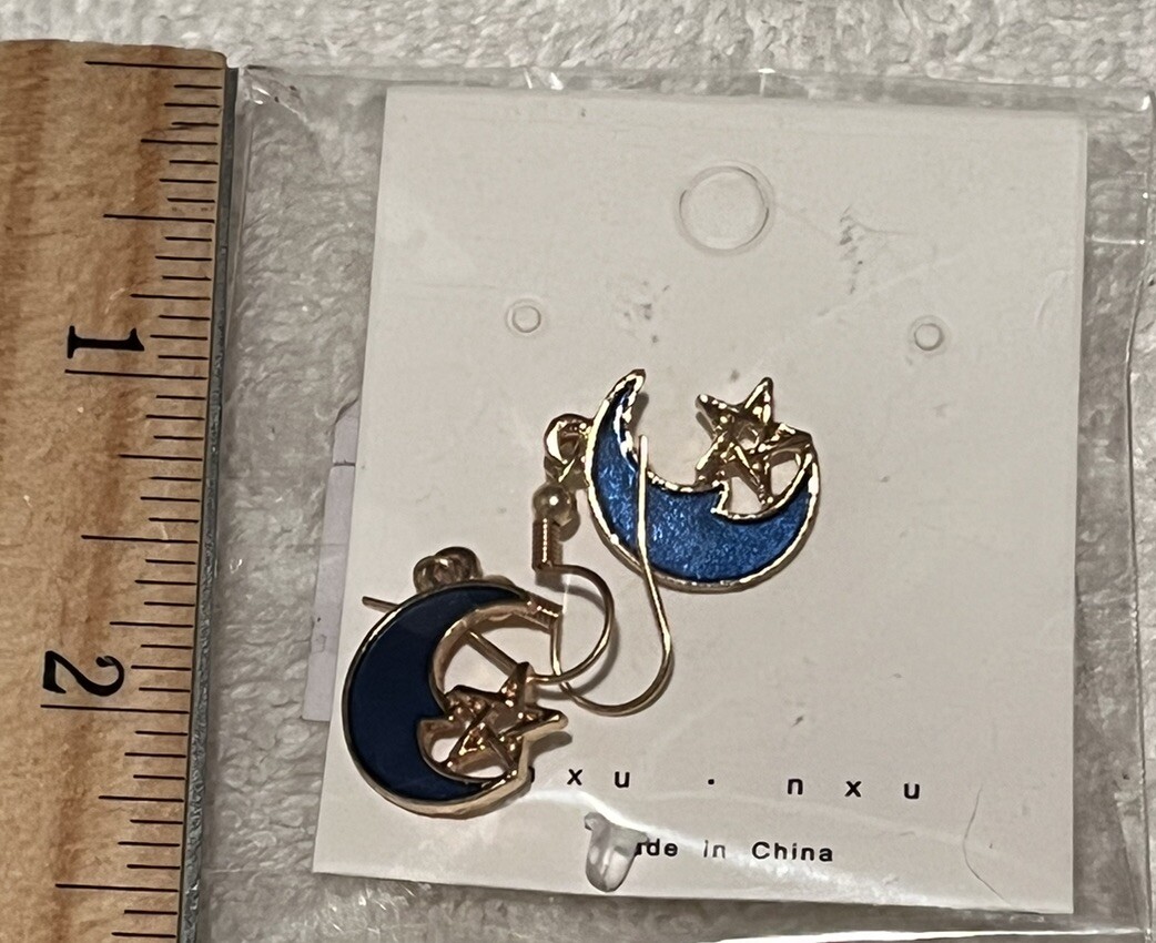 Goldtone Blue Enamel Star and Moon Earrings w/goldplated earwires NEW