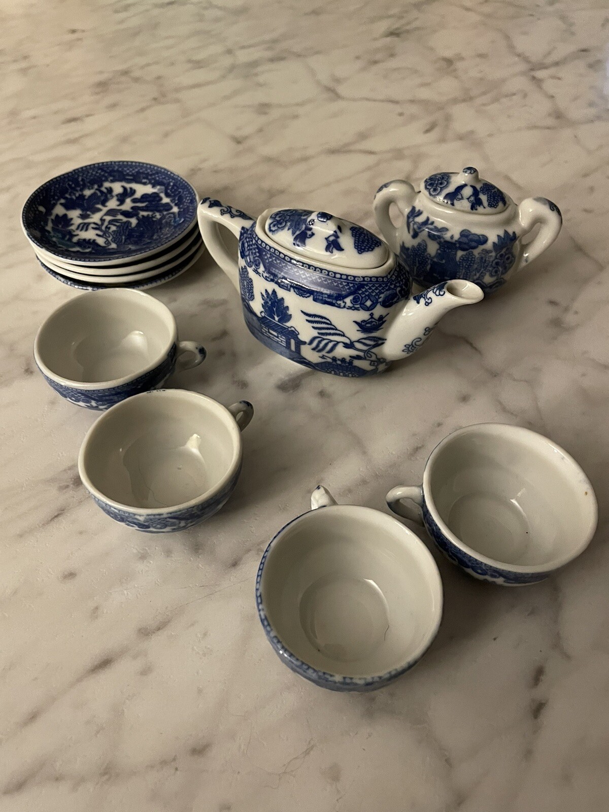 Vintage Blue Willow Partial Child's Tea Set Made In Japan