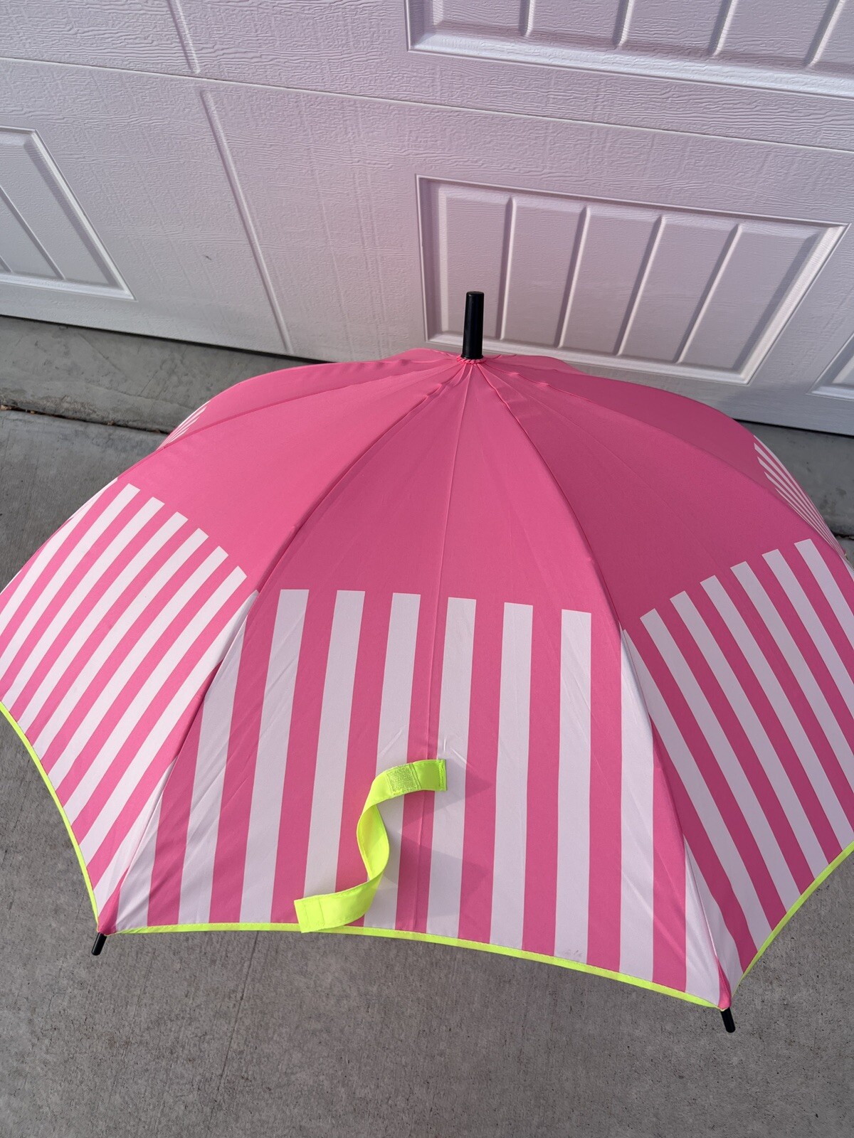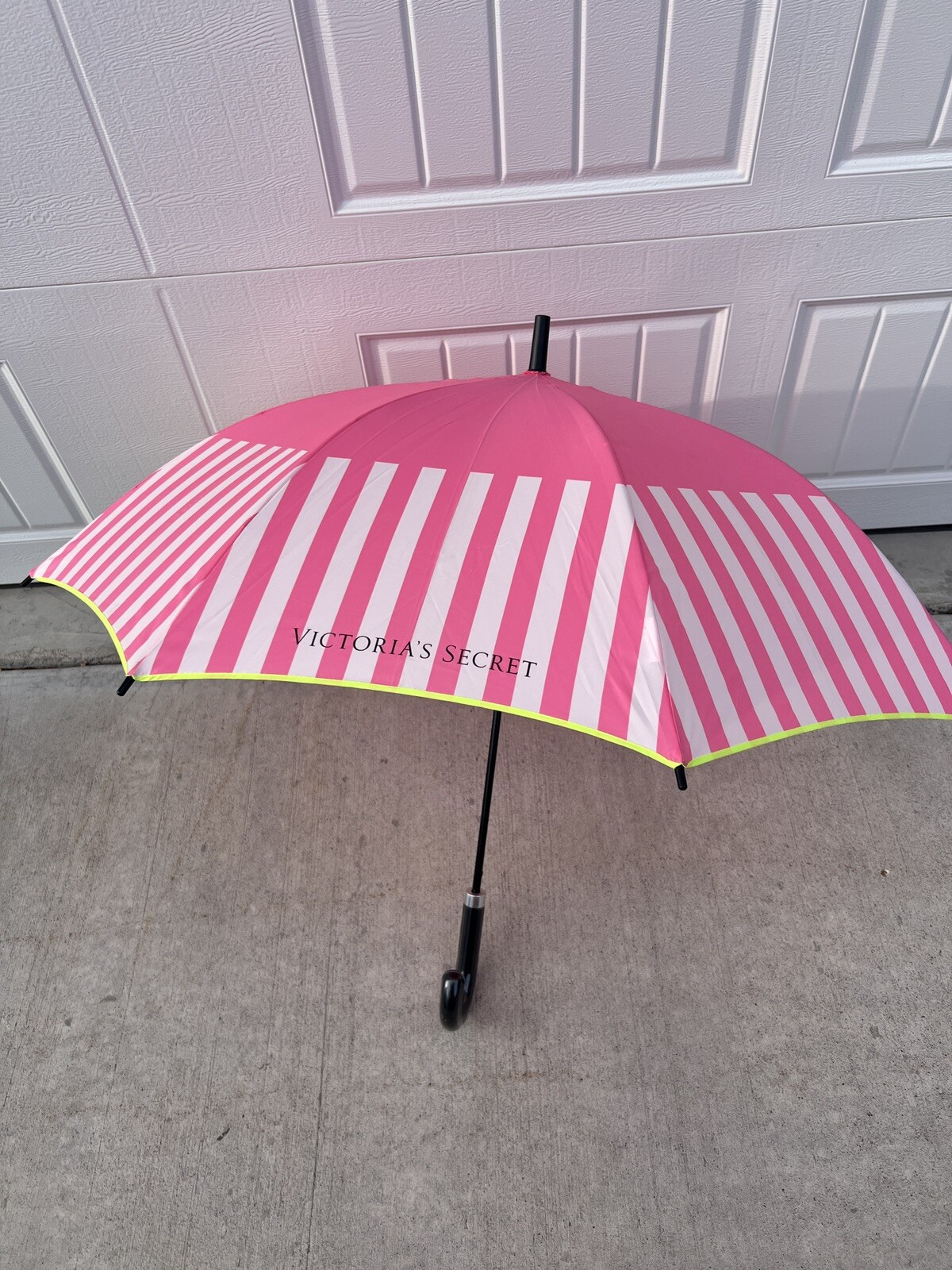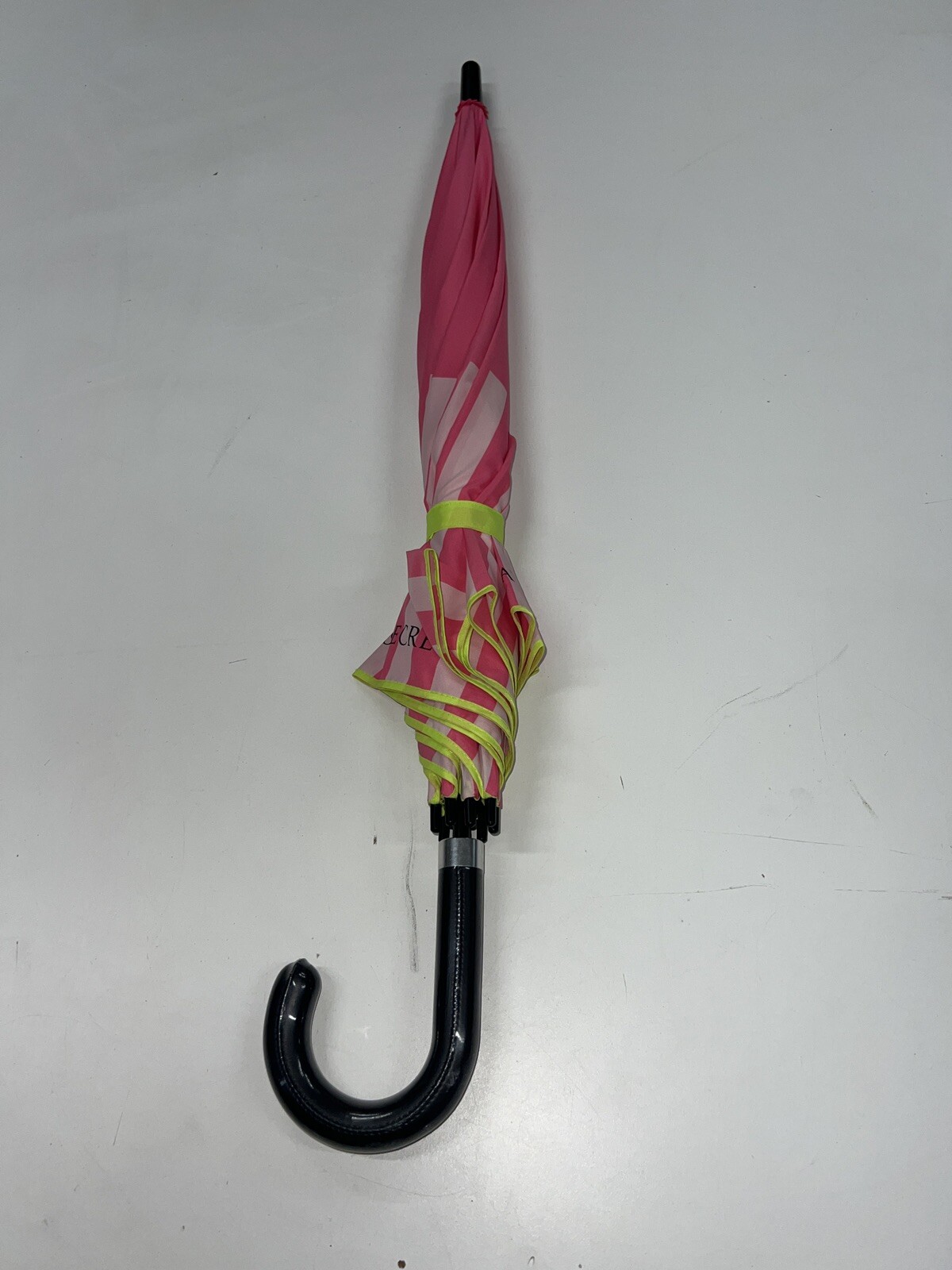 Victoria's Secret Full Umbrella Pink Striped 2016 Limited Edition Green Trim
