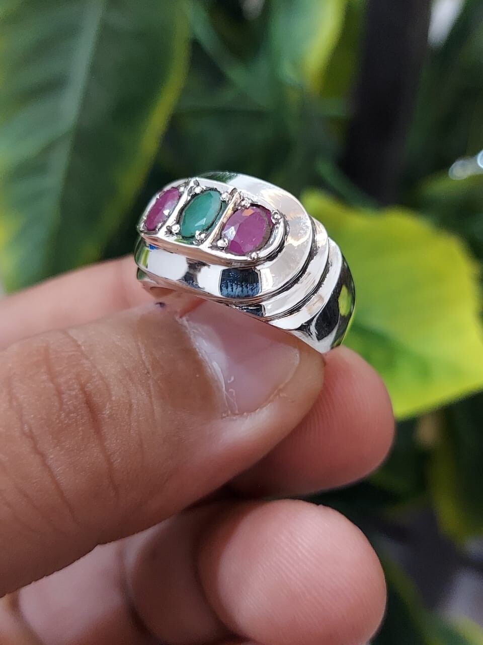 Natural Multi Color Band Emerald Stone With Natural Rubies Stone Ring Gift Ring