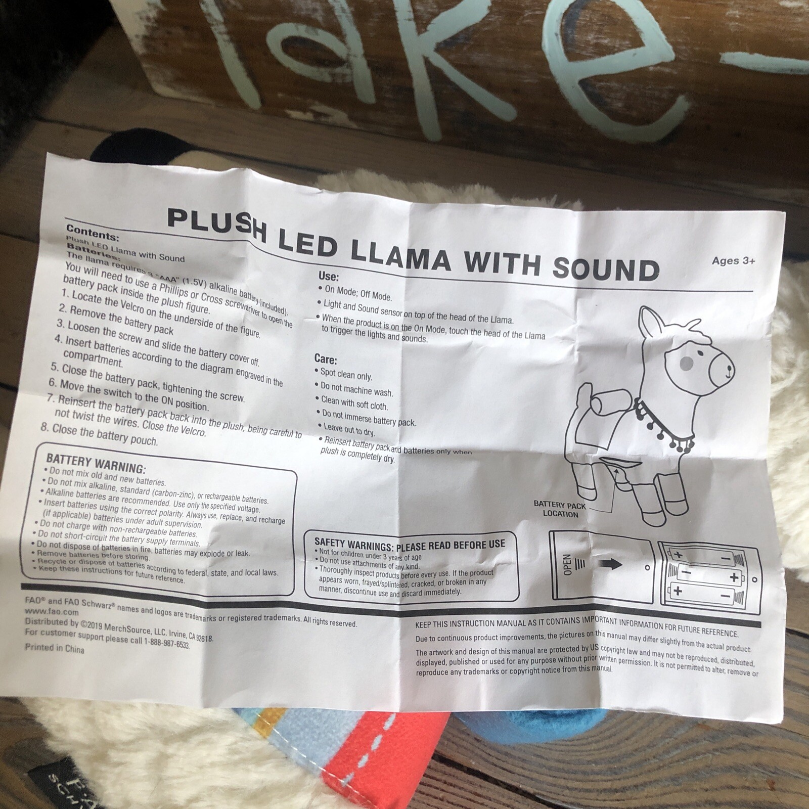 FAO Schwarz Llama 15 Soft Plush Toy Light Up And Sound With New Tags