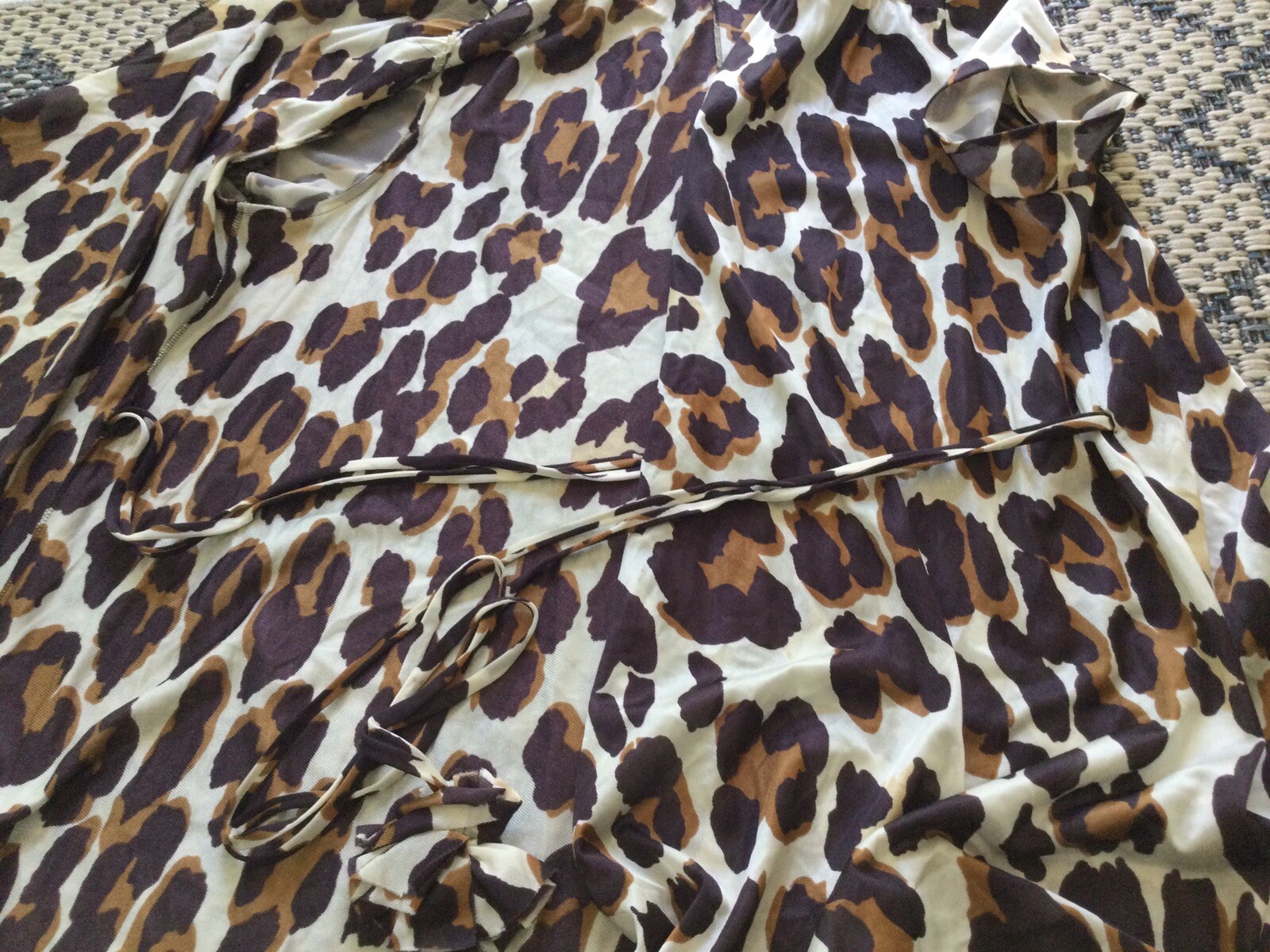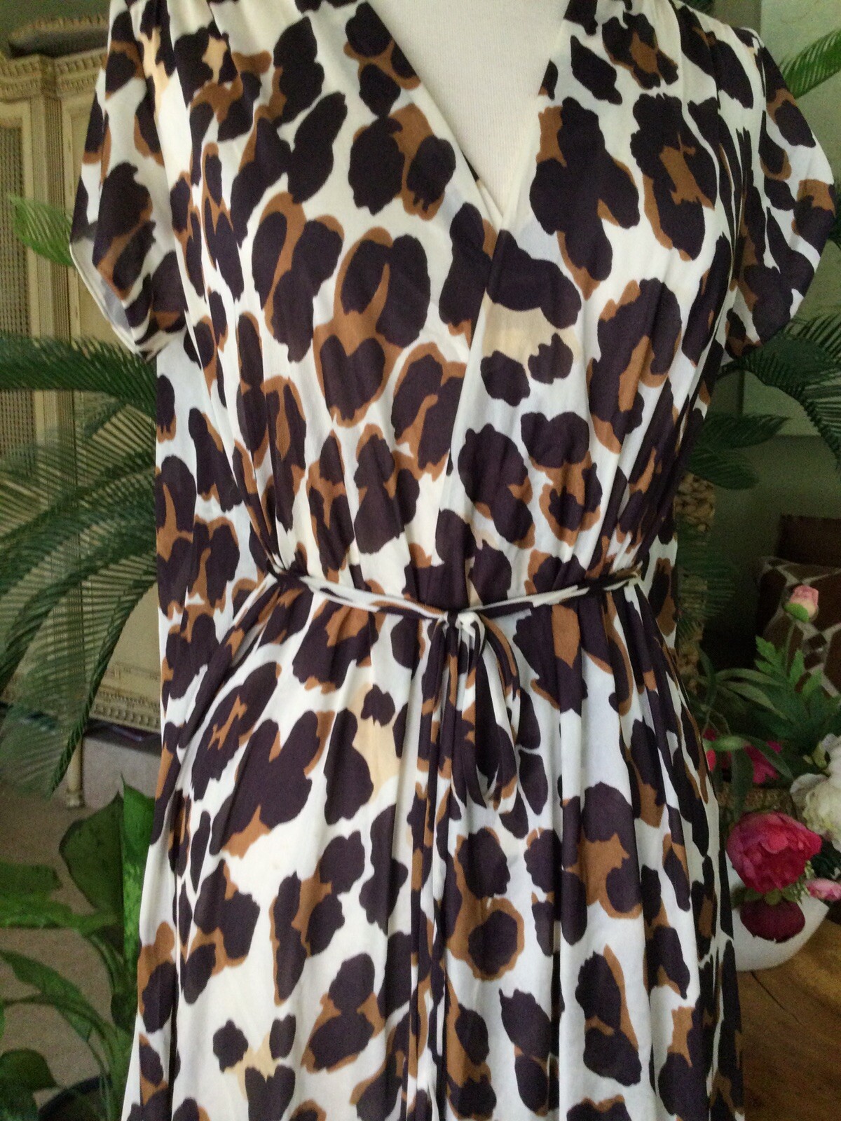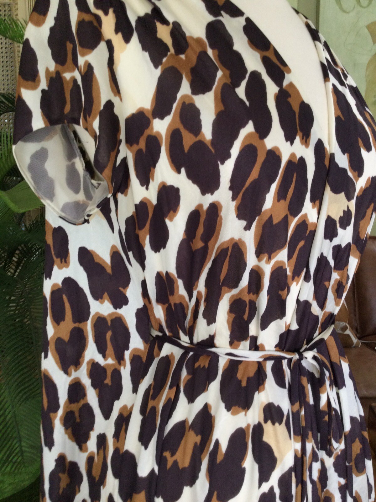 как выглядит Vintage 70s women Nylon Peignoir Robe House Dress White/brown/Coffee size S фото