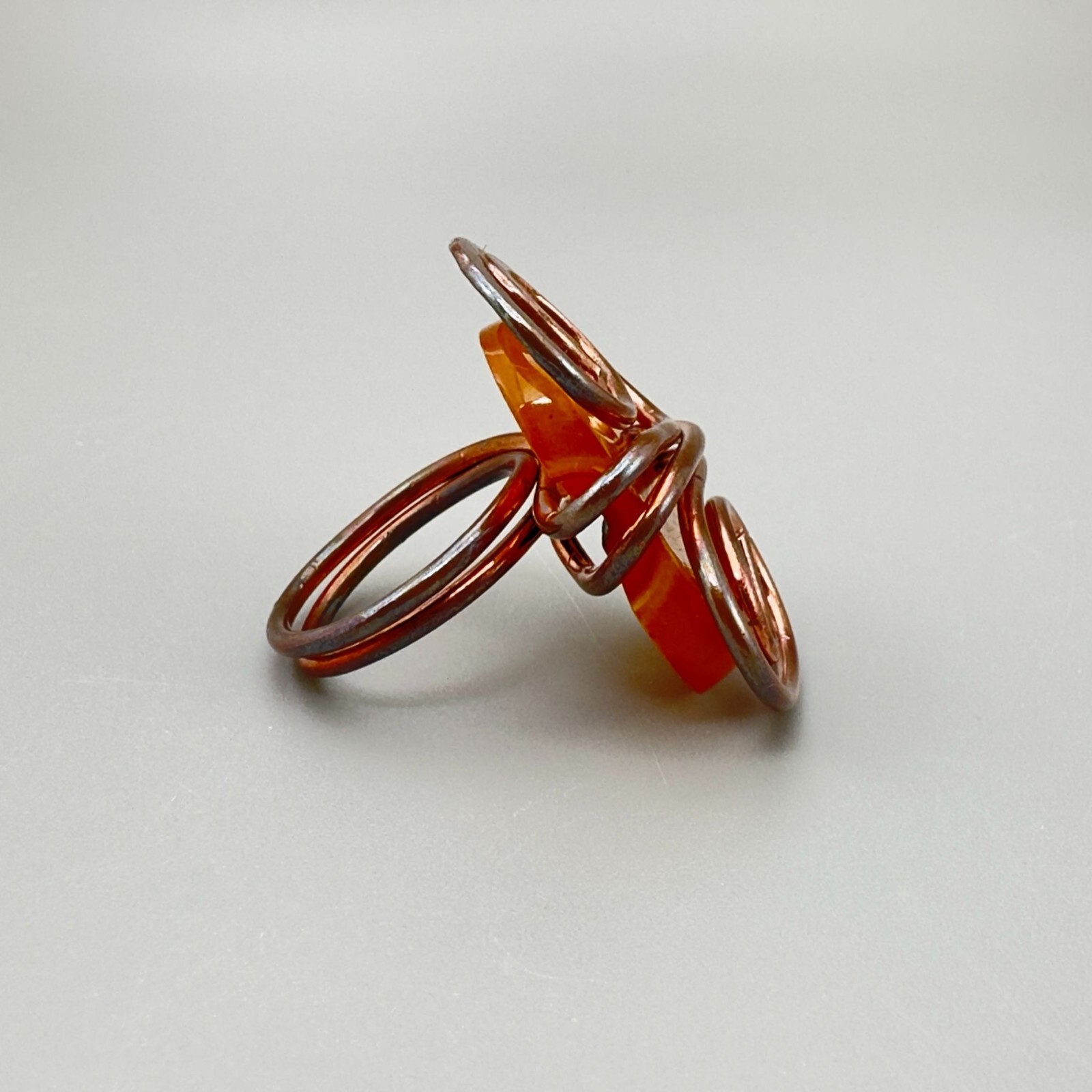 Handcrafted Copper Wire Wrapped Orange Stone Statement Ring Size 9.5