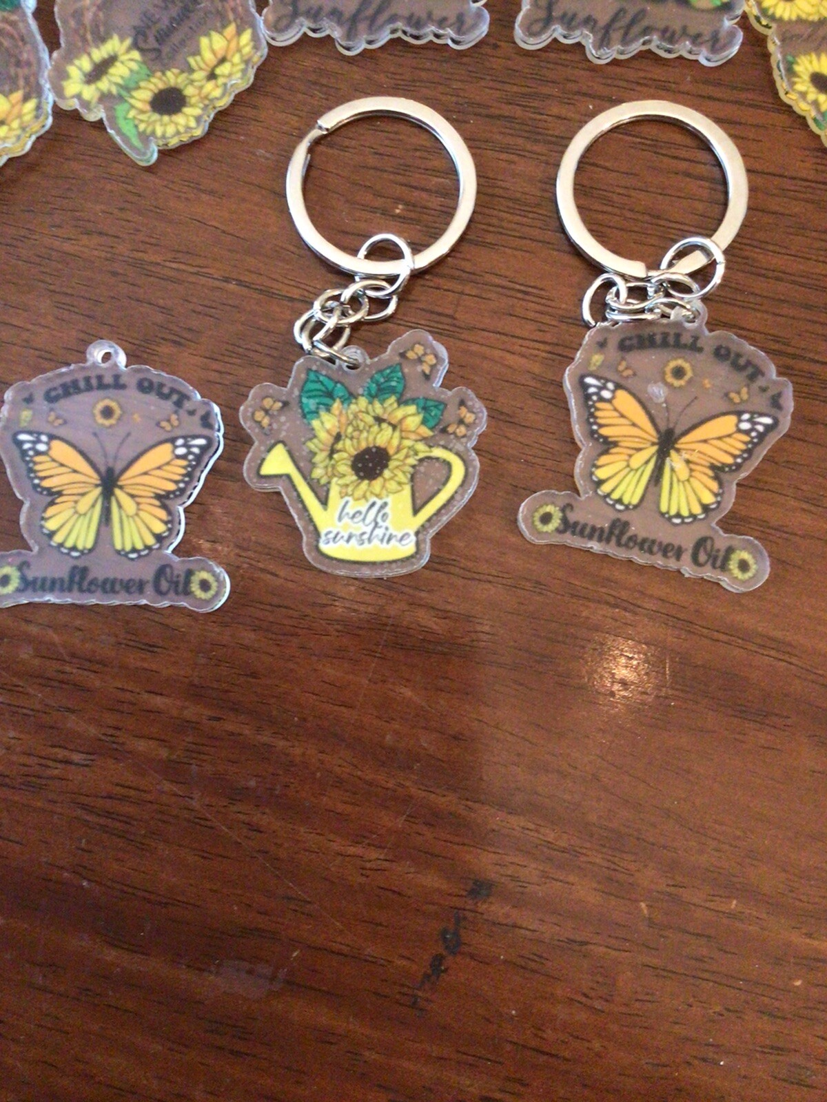 Sunflower Keychains, 11pc W/Sayings: Chill Out, Rise Shine, Hello Sunshine Etc..