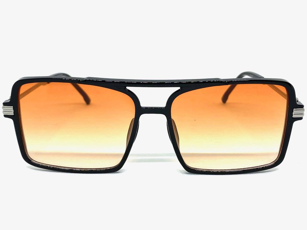 Classic Vintage Retro Style SUNGLASSES Square Black Silver Frame Orange Lens