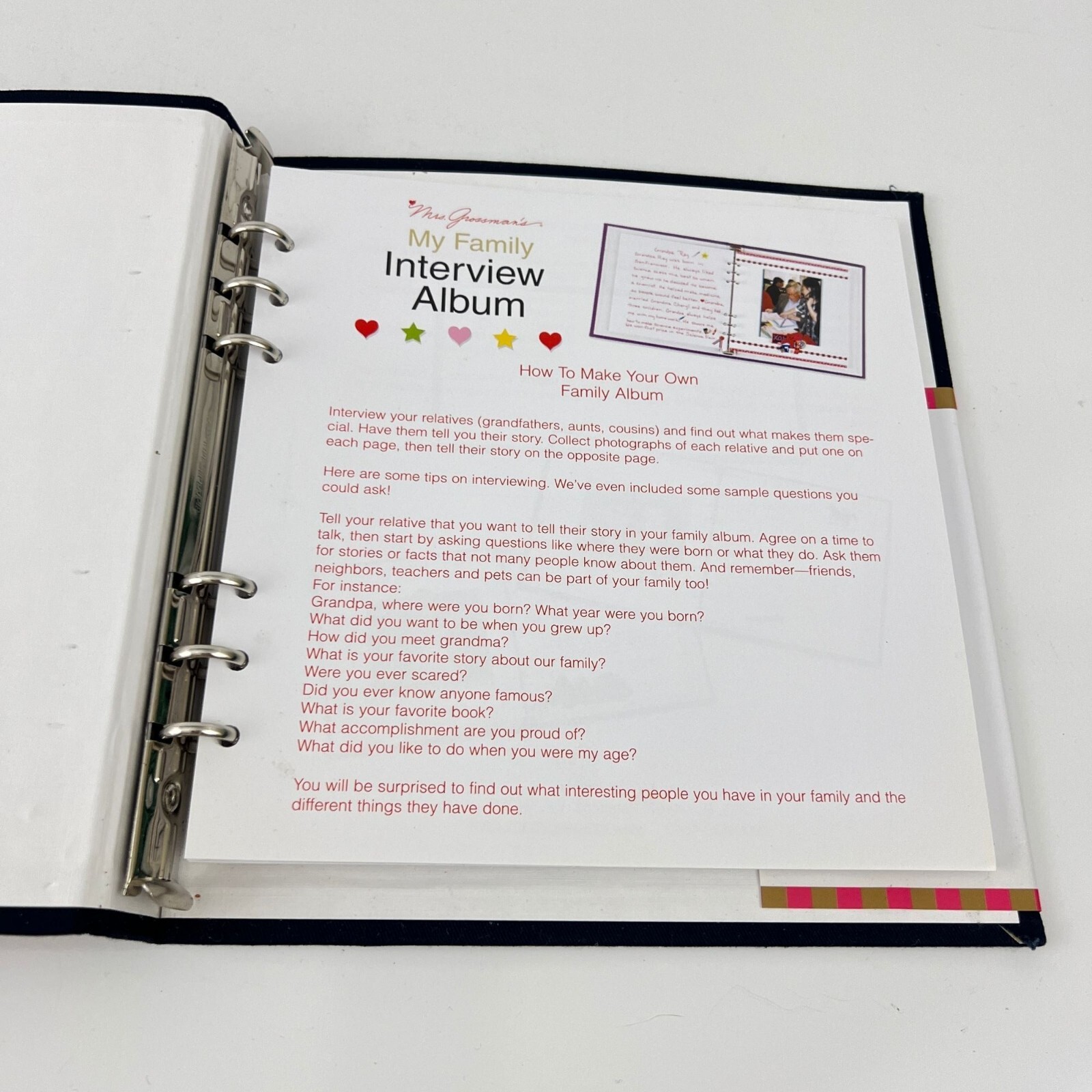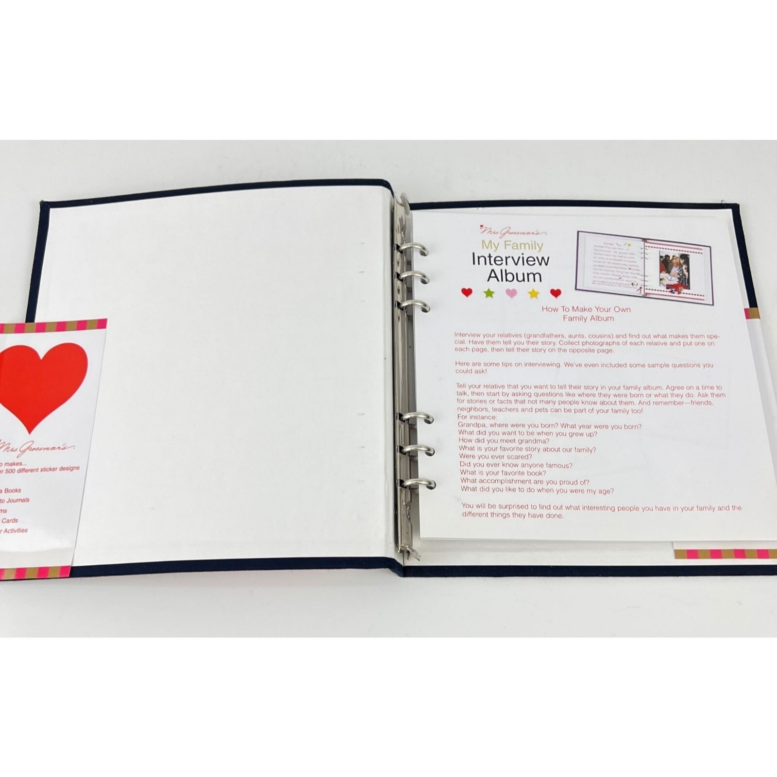 Mrs. Grossmans My Family Interview Album 6 Ring Binder Stickers Refillable