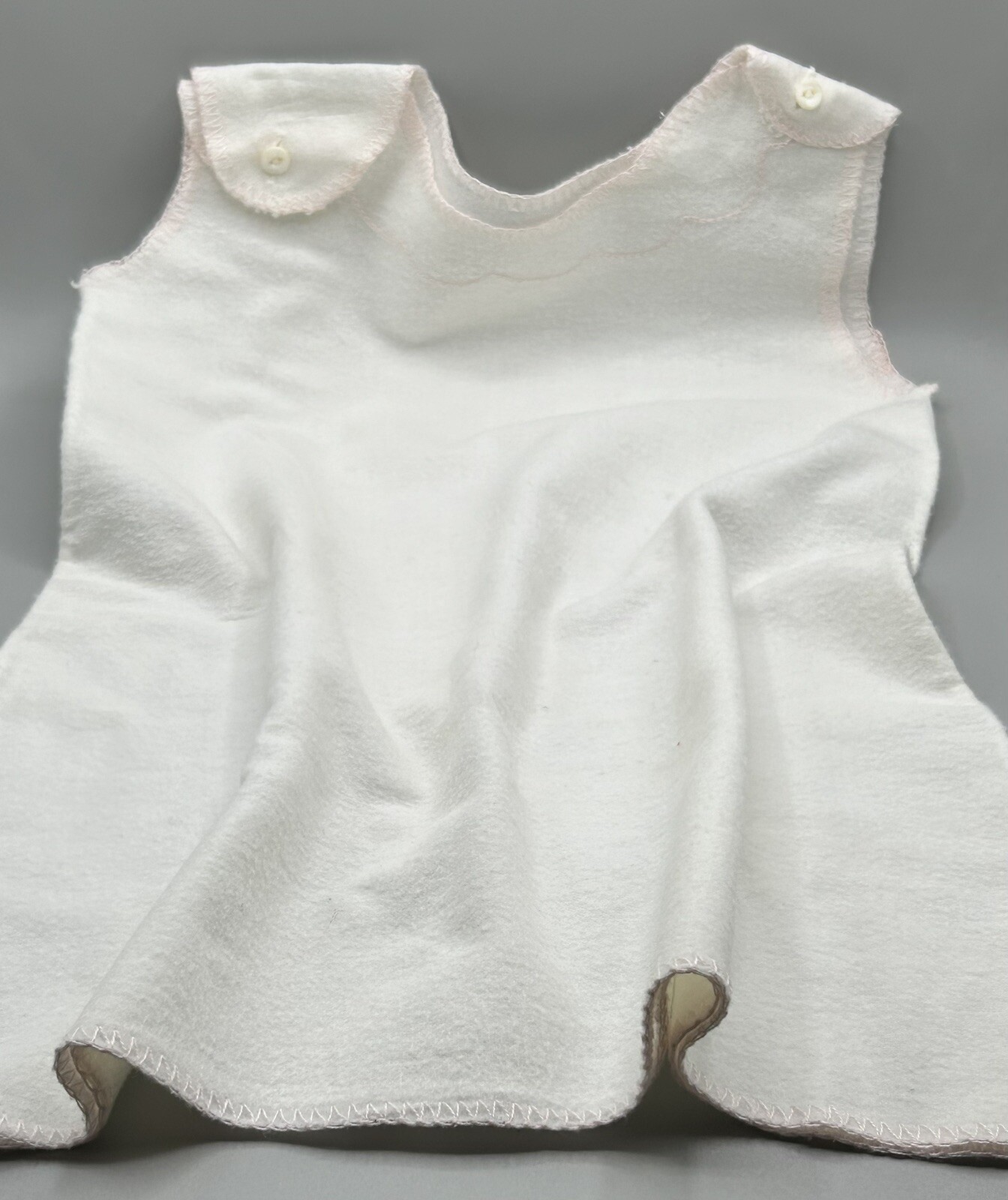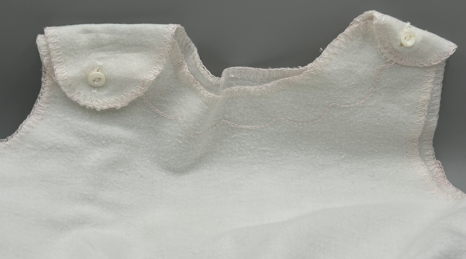 как выглядит 1950s Flannel Button-Shoulder Infant Nightgown With Pale Pink Embroidery фото