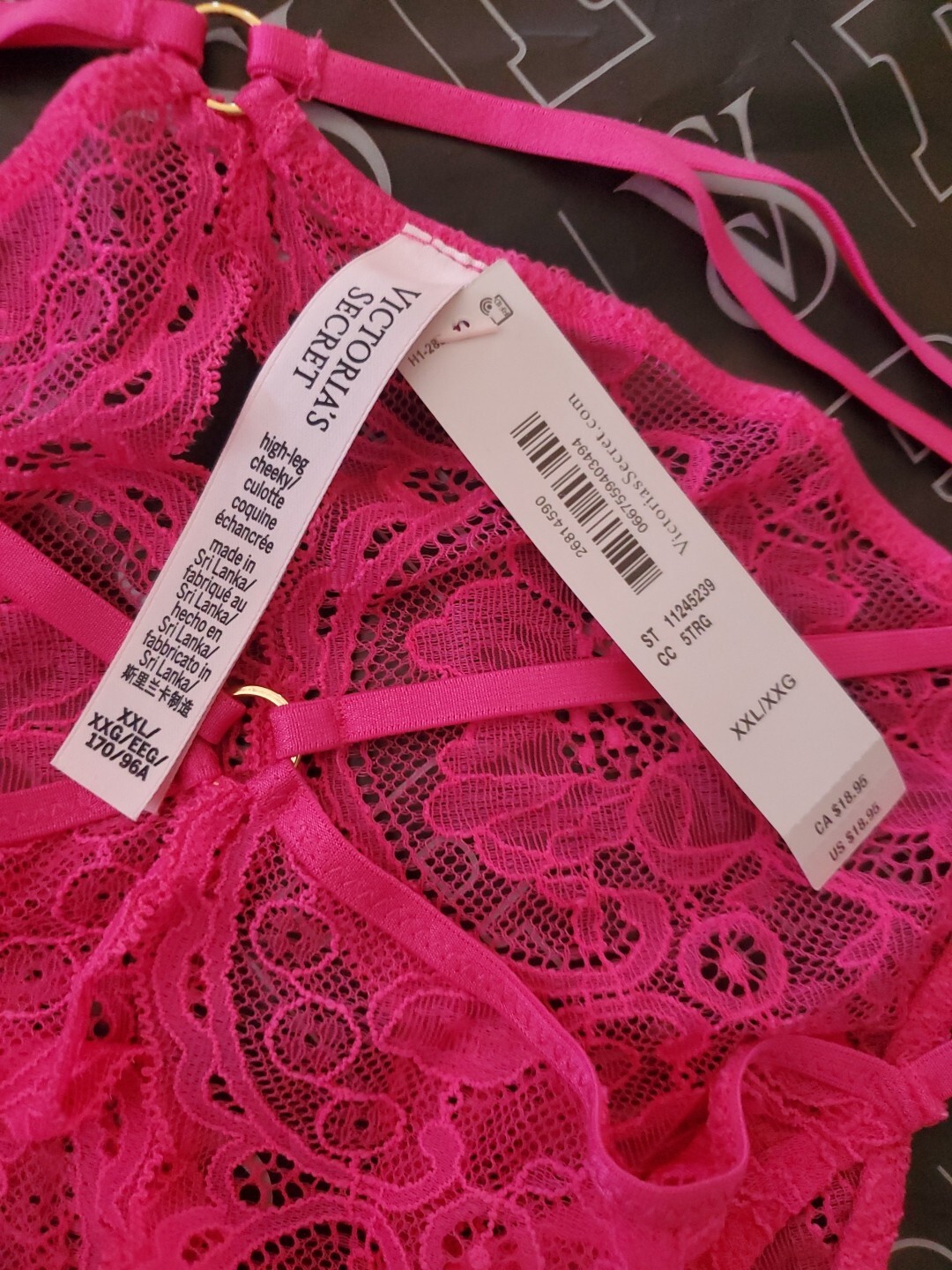 как выглядит NWT VICTORIAS SECRET PINK LACE STRAPPY GOLD RING CROTCHLESS THONG PANTIES XXL фото