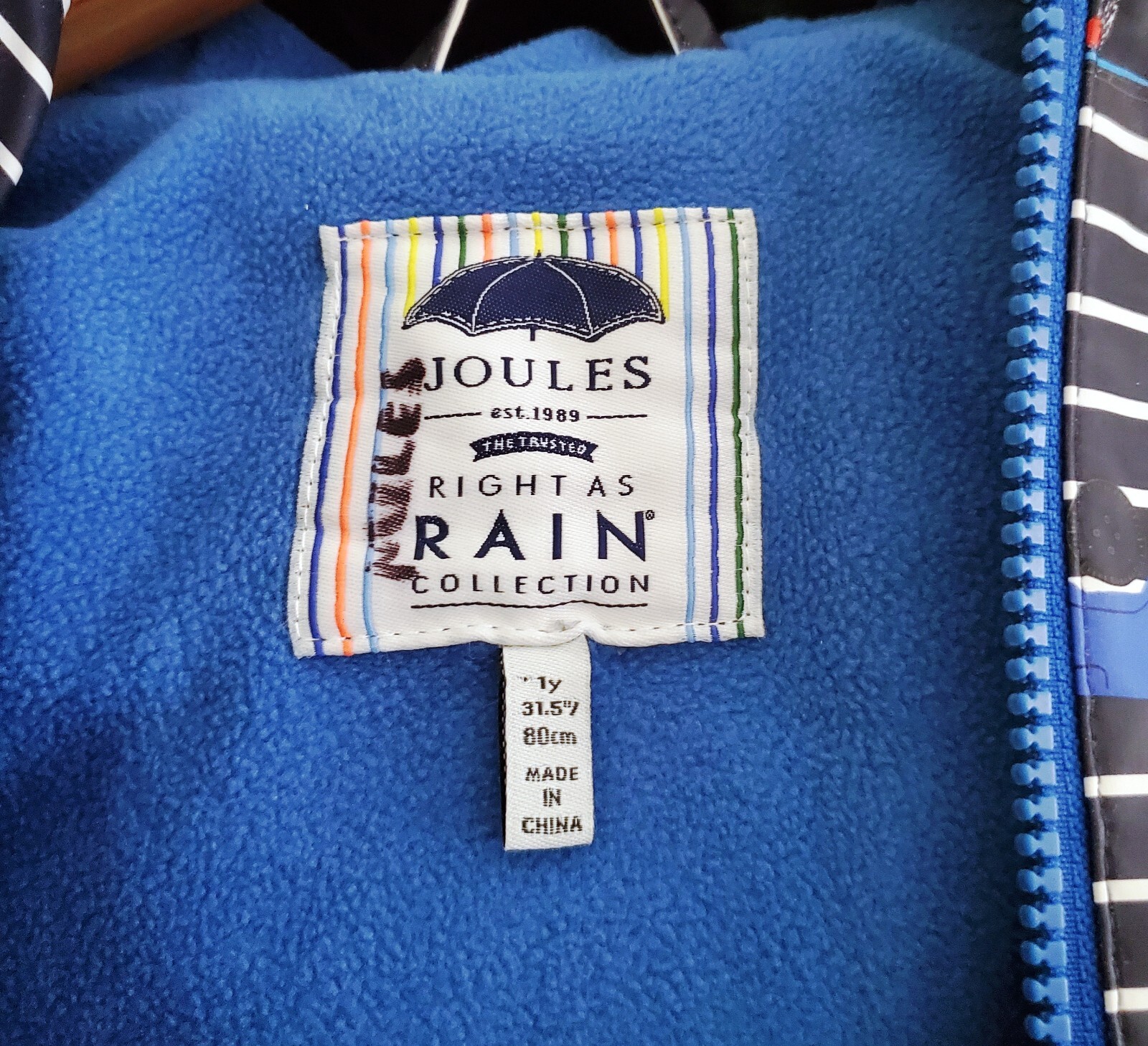как выглядит Joules Fleece-Lined Unisex Hooded Cars Animals Rain Jacket Size 1 Year фото