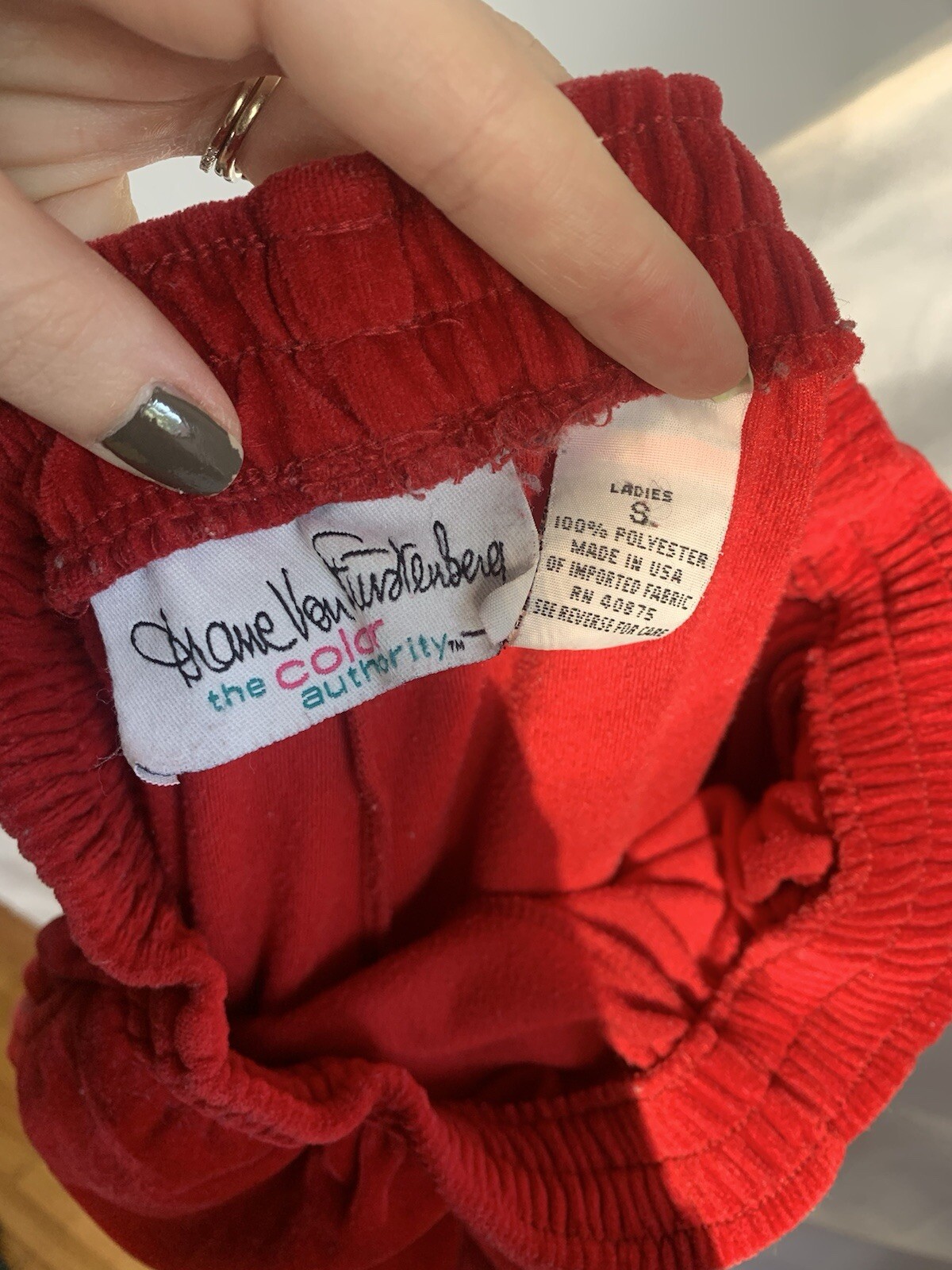 как выглядит Vintage Red Velvet Straight Leg Womens Pants фото