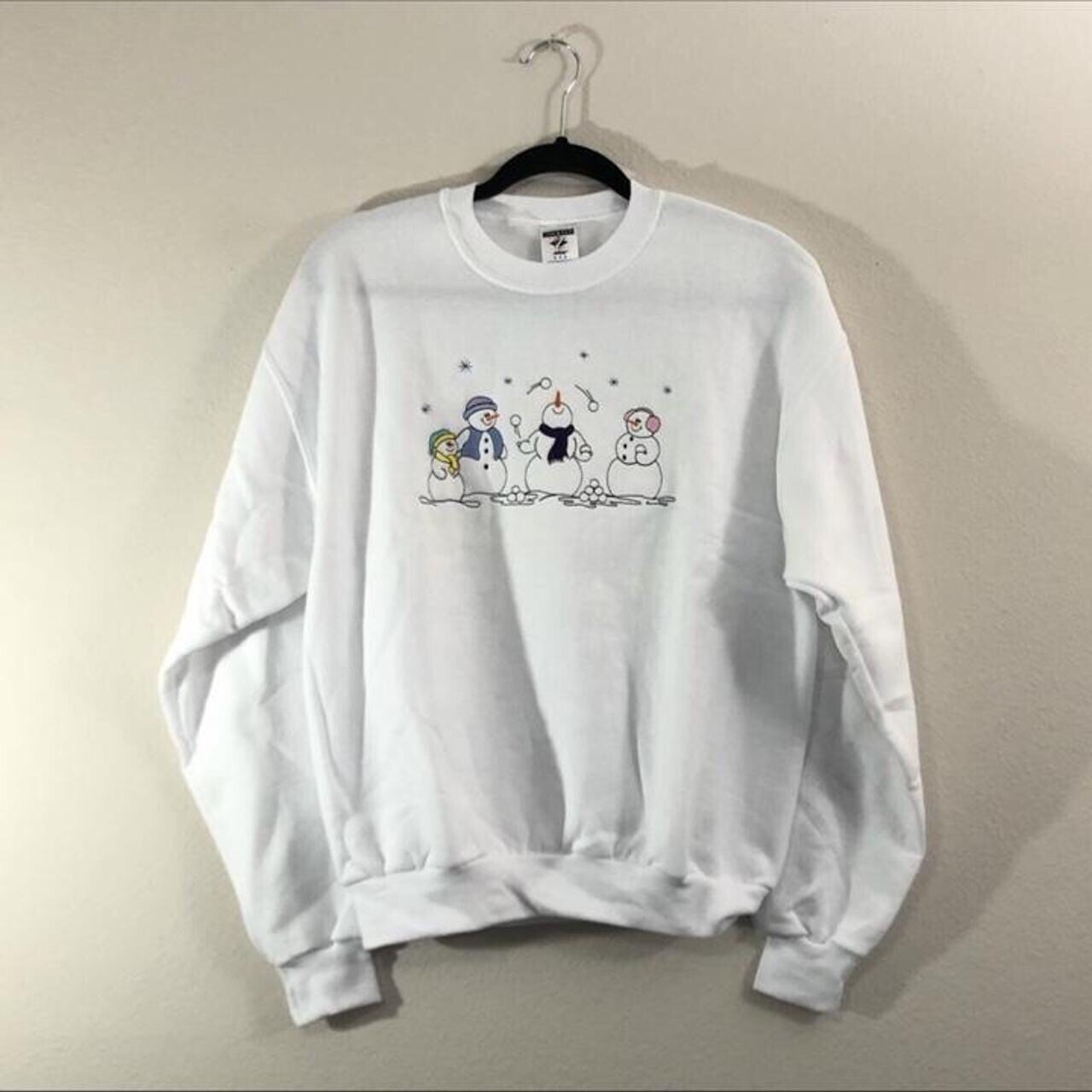как выглядит Vintage Jerzees Size Medium White Winter Snowman Sweater Long Sleeve Pullover фото