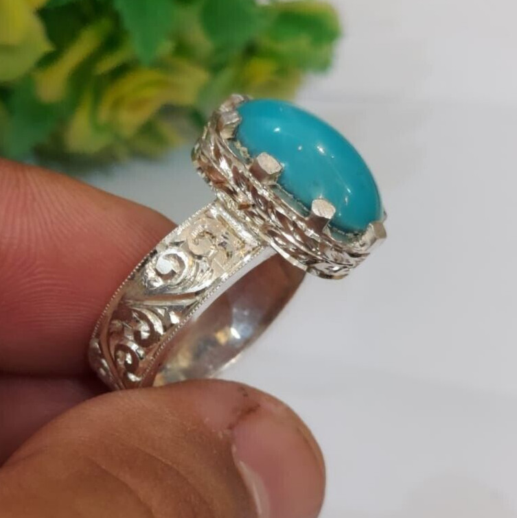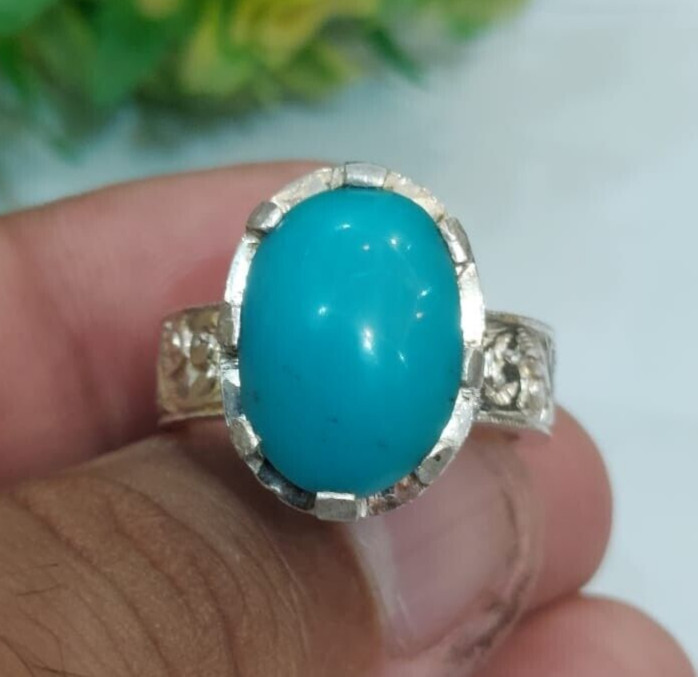 Natural Handmade Ring Original Blue Turquoise Stone Ring Nishapuri Feroza Ring