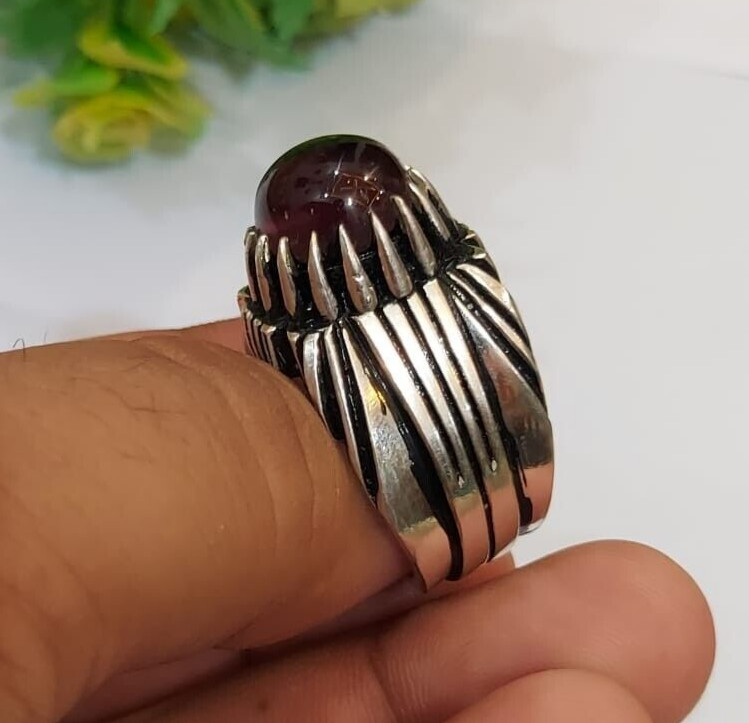 Natural Chitrali Ruby Ring Round Cut Handmade Sterling Design Ruby Ring Gift