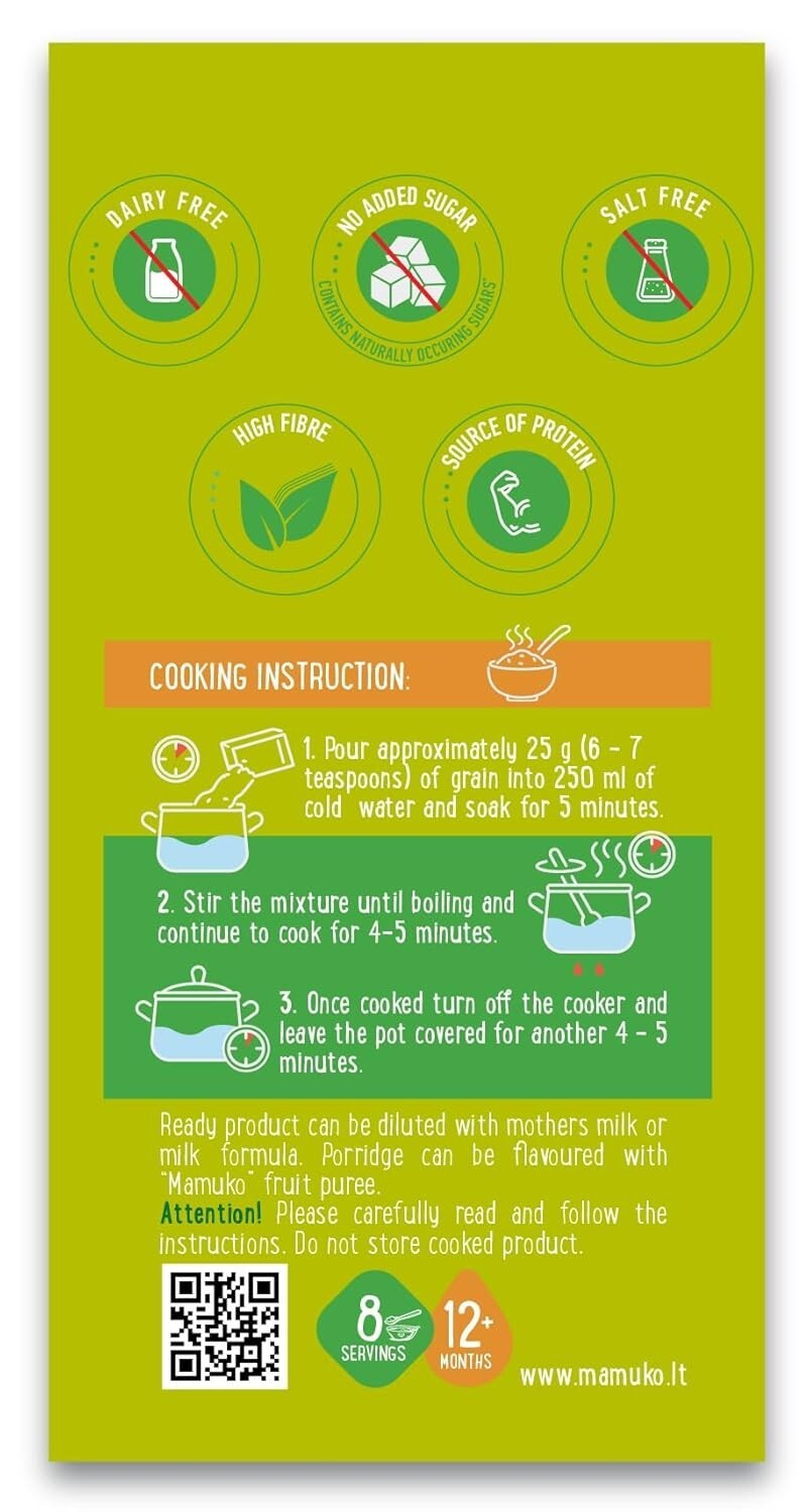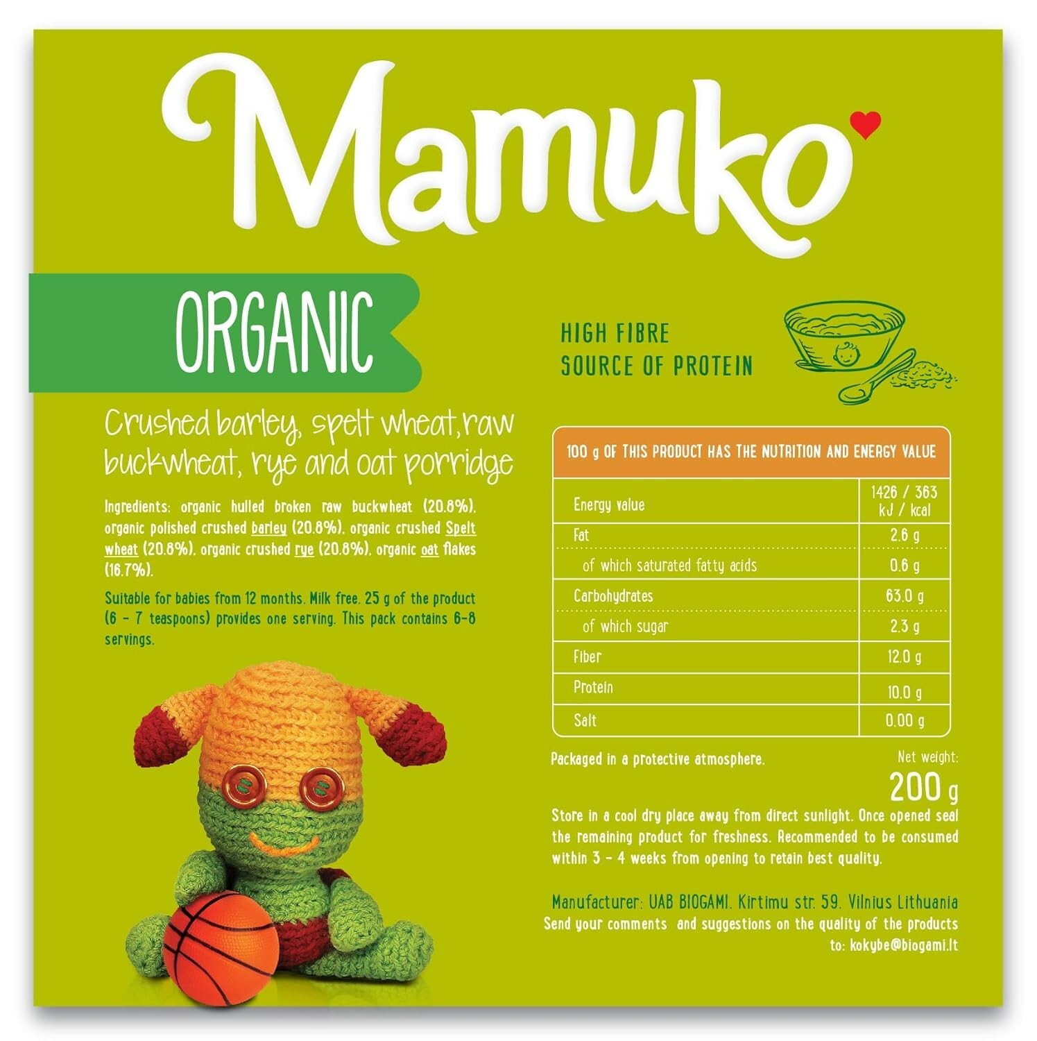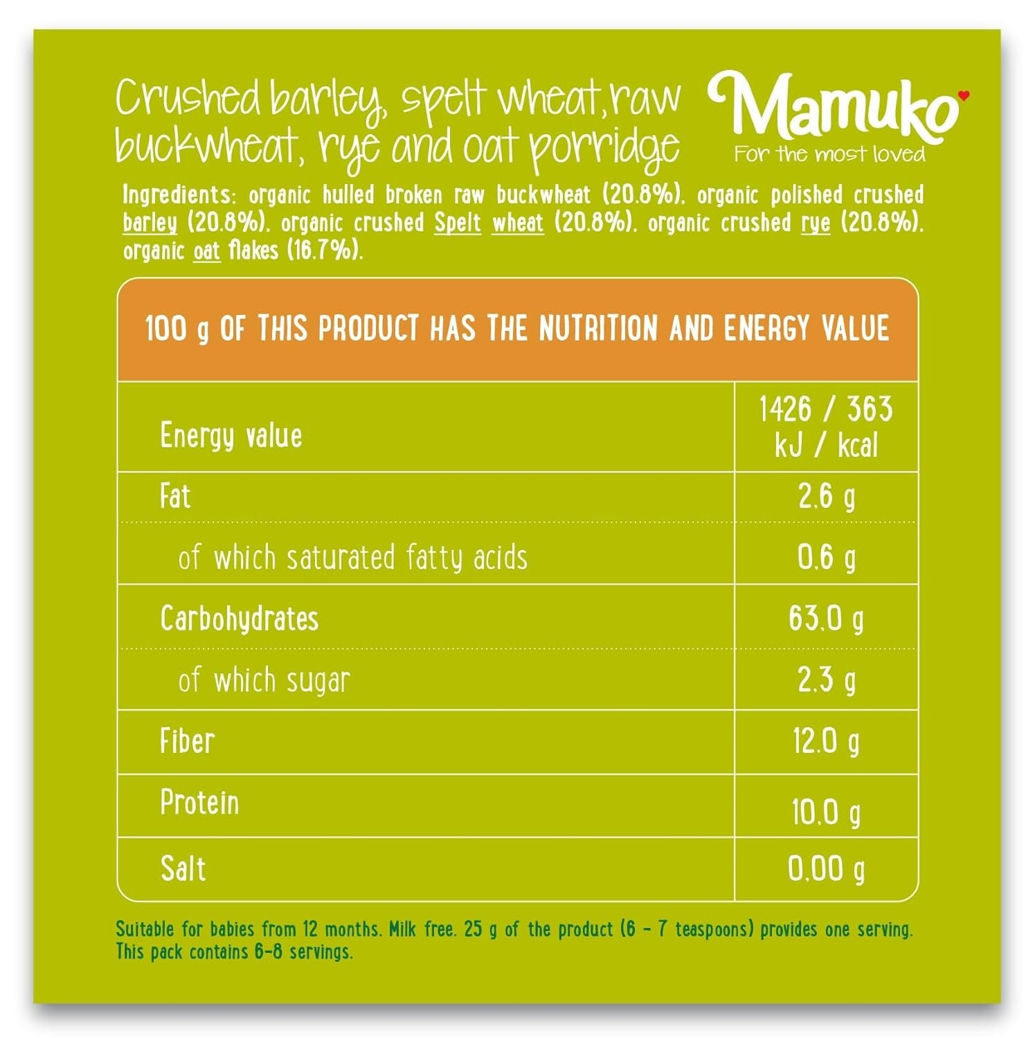 MAMUKO Baby Organic Porridge Oats, Raw Buckwheat, Barley, Spelt, Rye 12M 200g