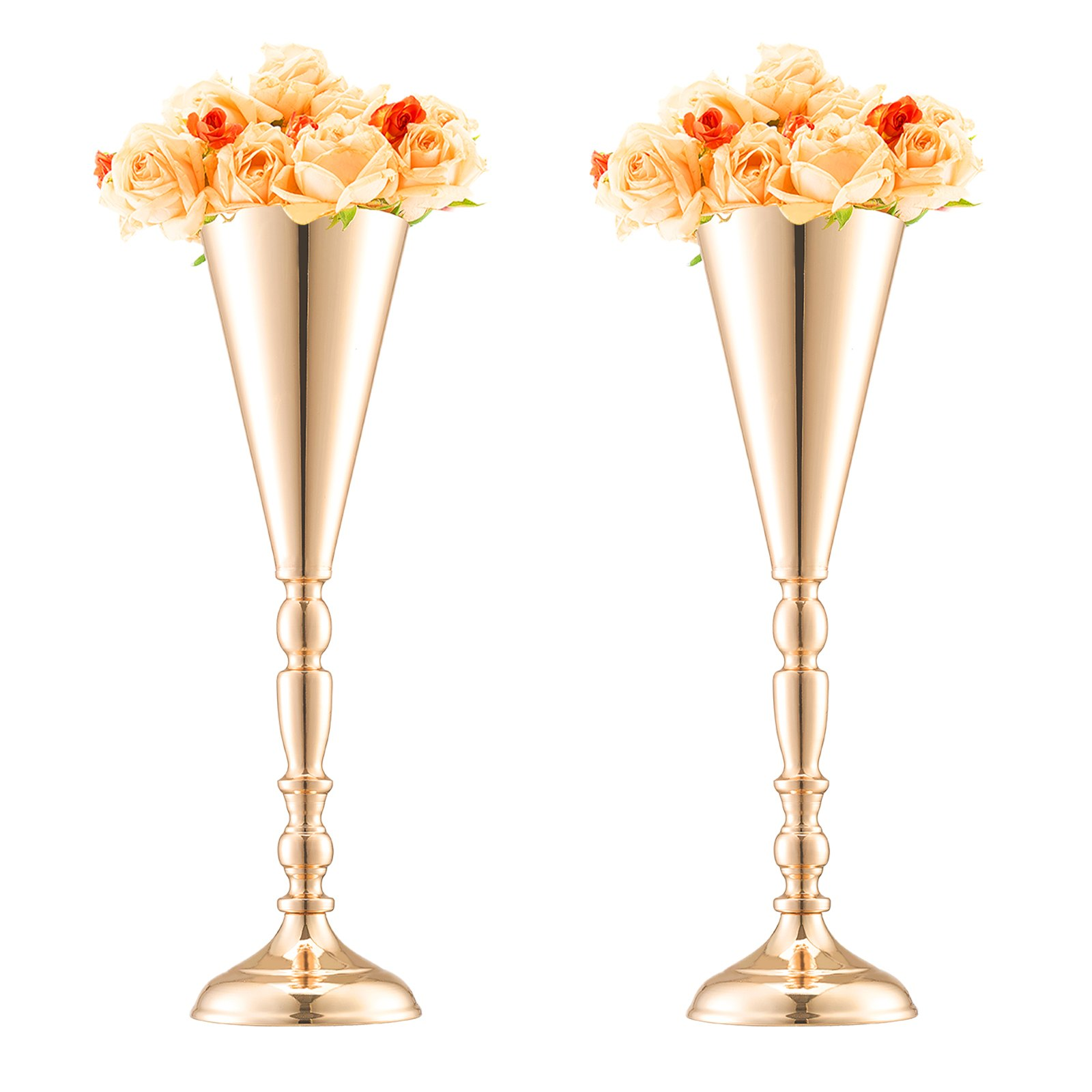 10PCS 43cm/16.9 Tall Wedding Flower Vase Metal Gold Trumpet for Tables
