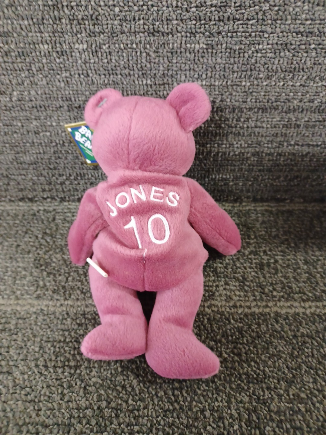 NWT Salvinos Bamm Beanos Beanie Babies 10 Chipper Jones Plum Teddy Bear 1998