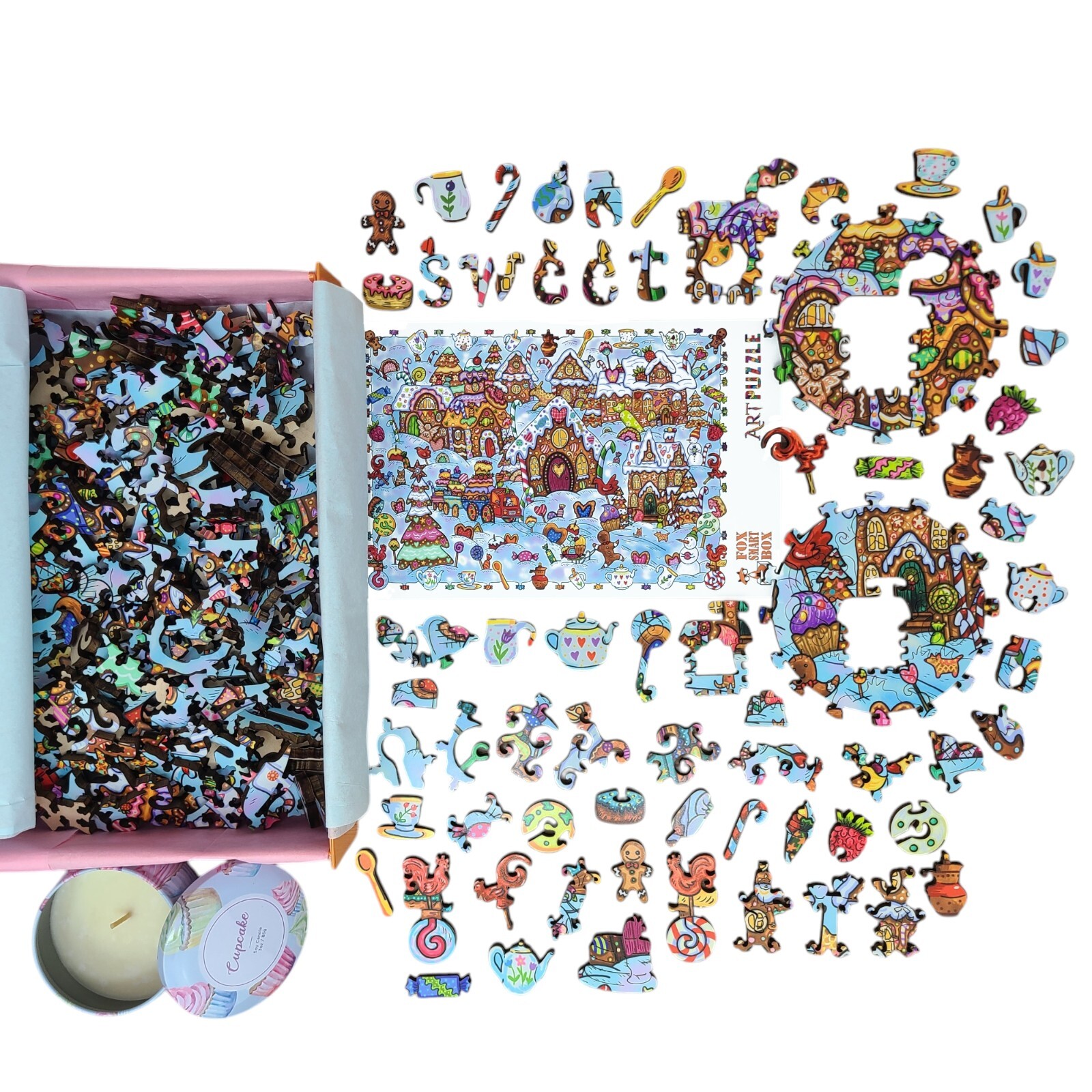 Wooden Jigsaw Puzzle for Adults by FoxSmartBox - 325 Pieces - Sweety City