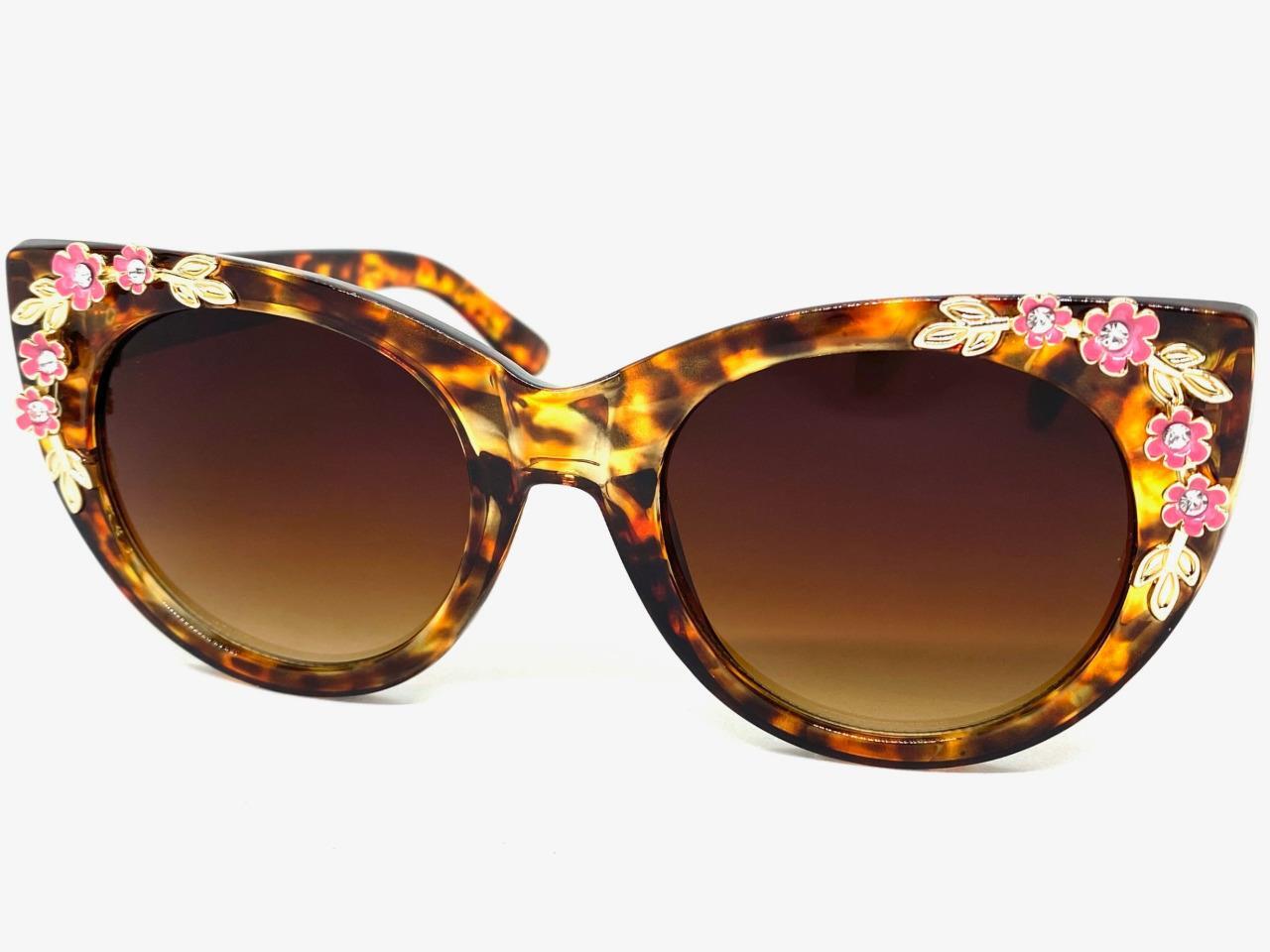 OVERSIZE Vintage Retro Cat Eye SUNGLASSES Large Big Tortoise Frame Floral Design