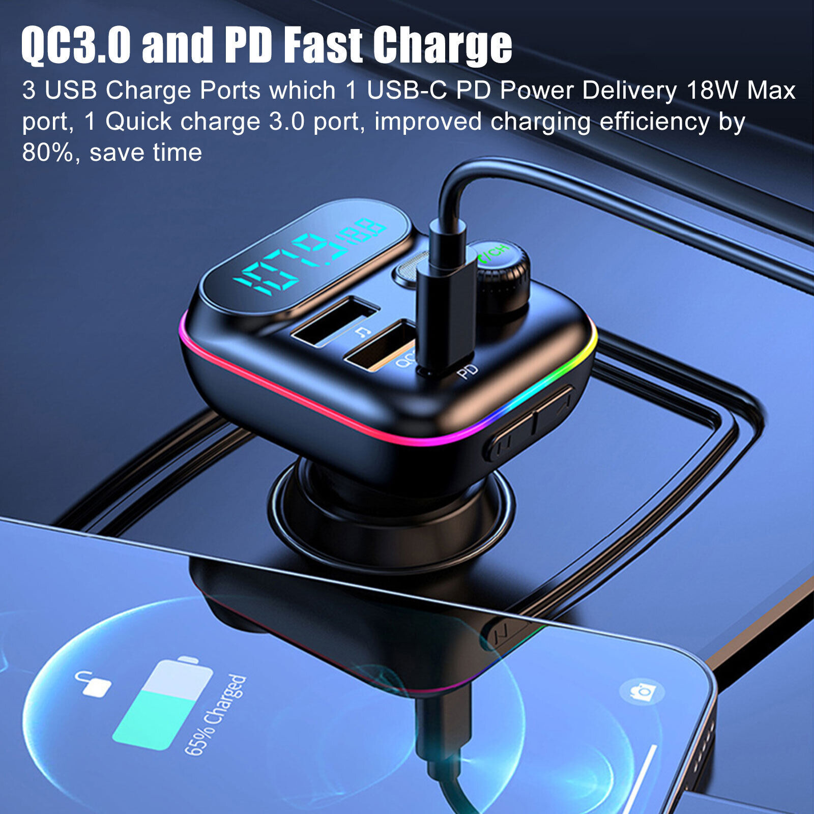 Bluetooth5.0 Car Adapter FM Transmitter USB AUX Radio Handsfree MP3 Music Player