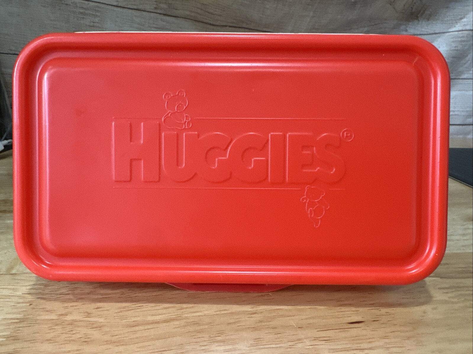 • Vintage 1990 Huggies Baby Wipes Plastic Container Red Embossed Lid Empty Prop