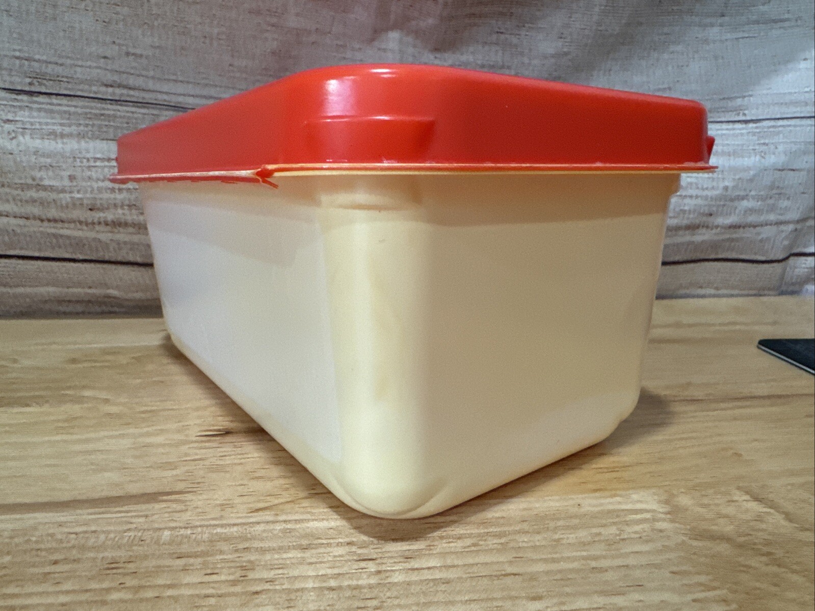 как выглядит Vintage 1990 Huggies Baby Wipes Plastic Container Red Embossed Lid Empty Prop фото