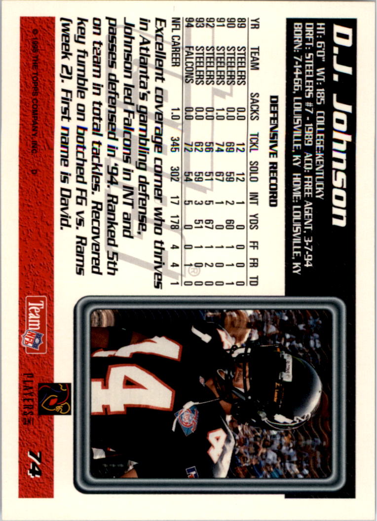 B5892- 1995 Topps Factory Jaguars FB Cards 1-250 -: Jaguars #74 D.J. Johnson - NM-MT