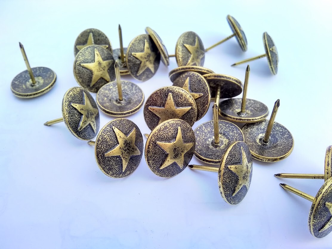 Antique Brass Western Style Star LARGE 3/4 INCH Head Nail/Upholstery Tack Pkg 50