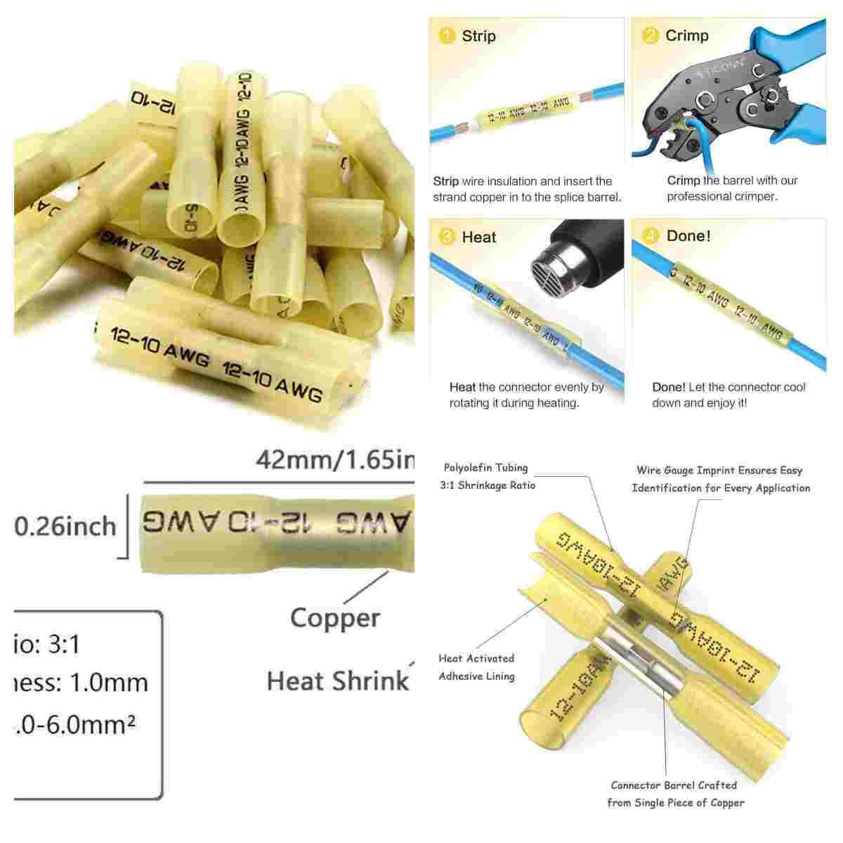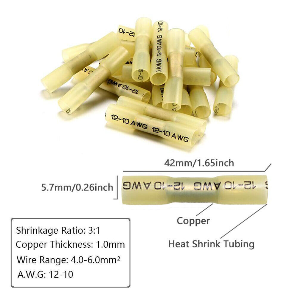 Yellow AWG 12-10 Gauge Heat Shrink Crimp Terminals Wire Butt Connectors 500-50X