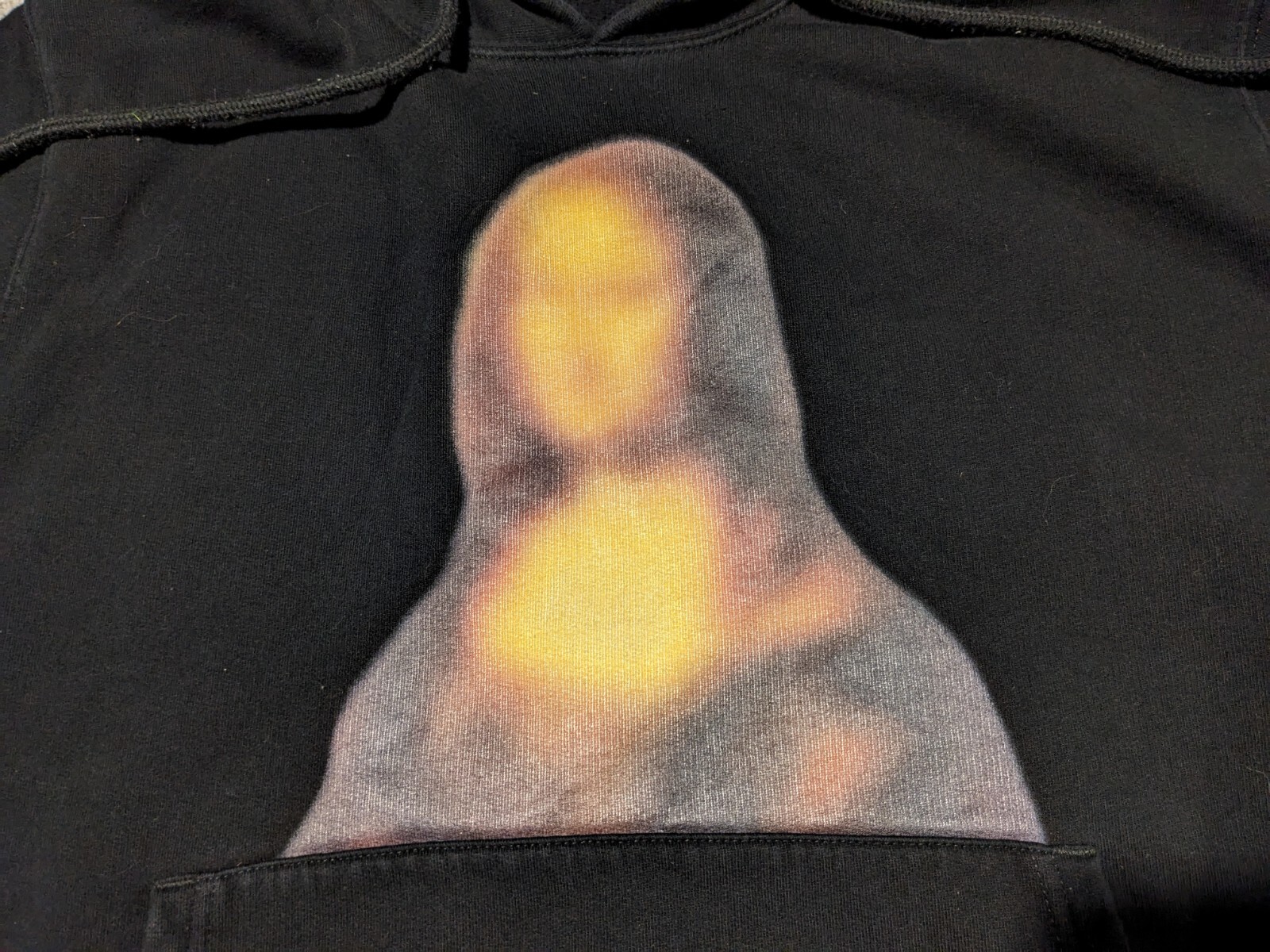 как выглядит Off White Hoodie Mens Large Virgil Abloh Blurred Mona Lisa Arrows 2013 Sweater фото