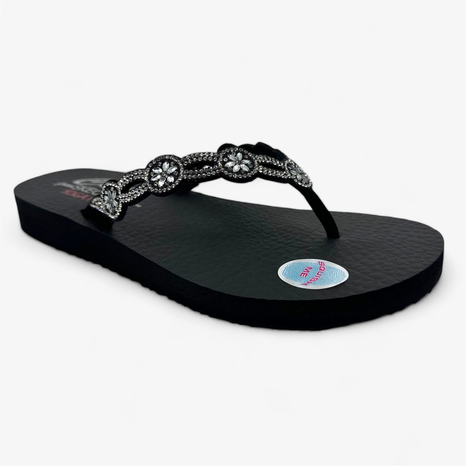 Skechers Meditation Floral Candy Black Womens Sandal Thong