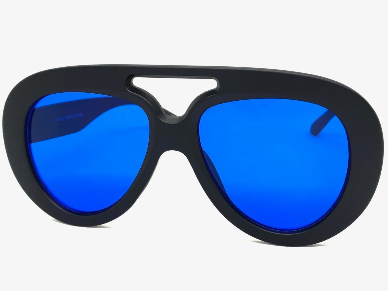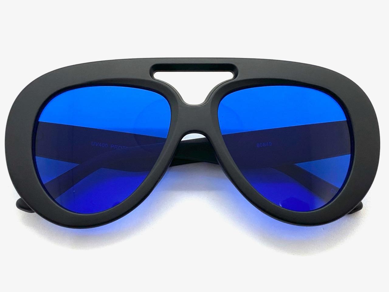 OVERSIZED EXAGGERATED Vintage Retro Style SUNGLASSES Large Black Frame Blue Lens