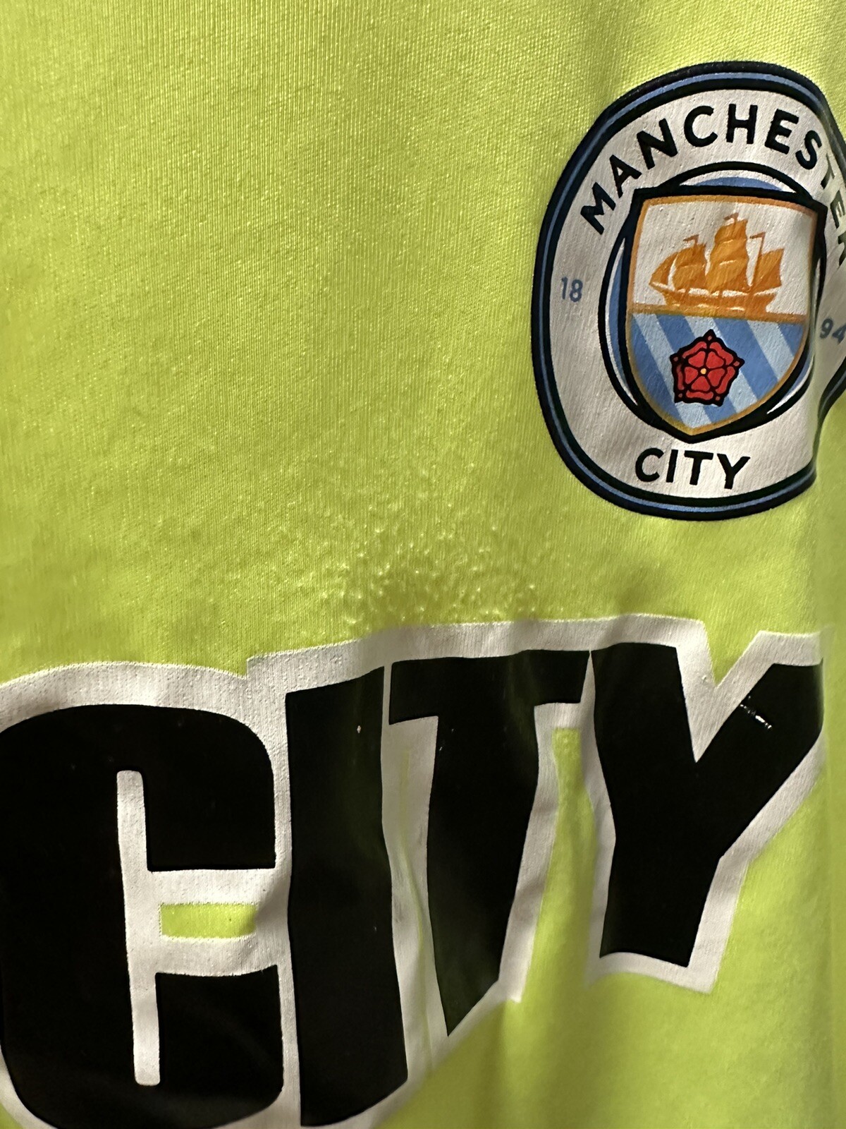 • Manchester City Original Merchandise Soccer Yellow Green Jersey YOUTH LARGE
