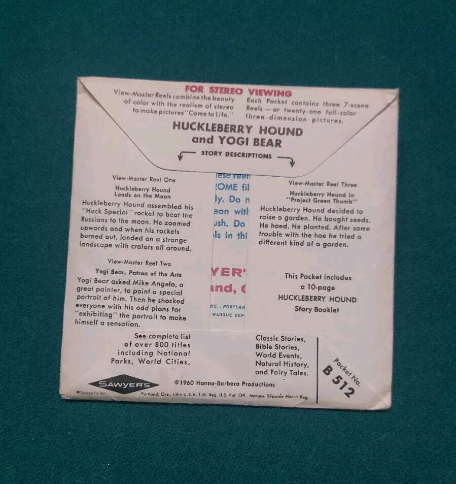Huckleberry Hound and Yogi Bear 3d View-Master 3 Reel Packet 1960