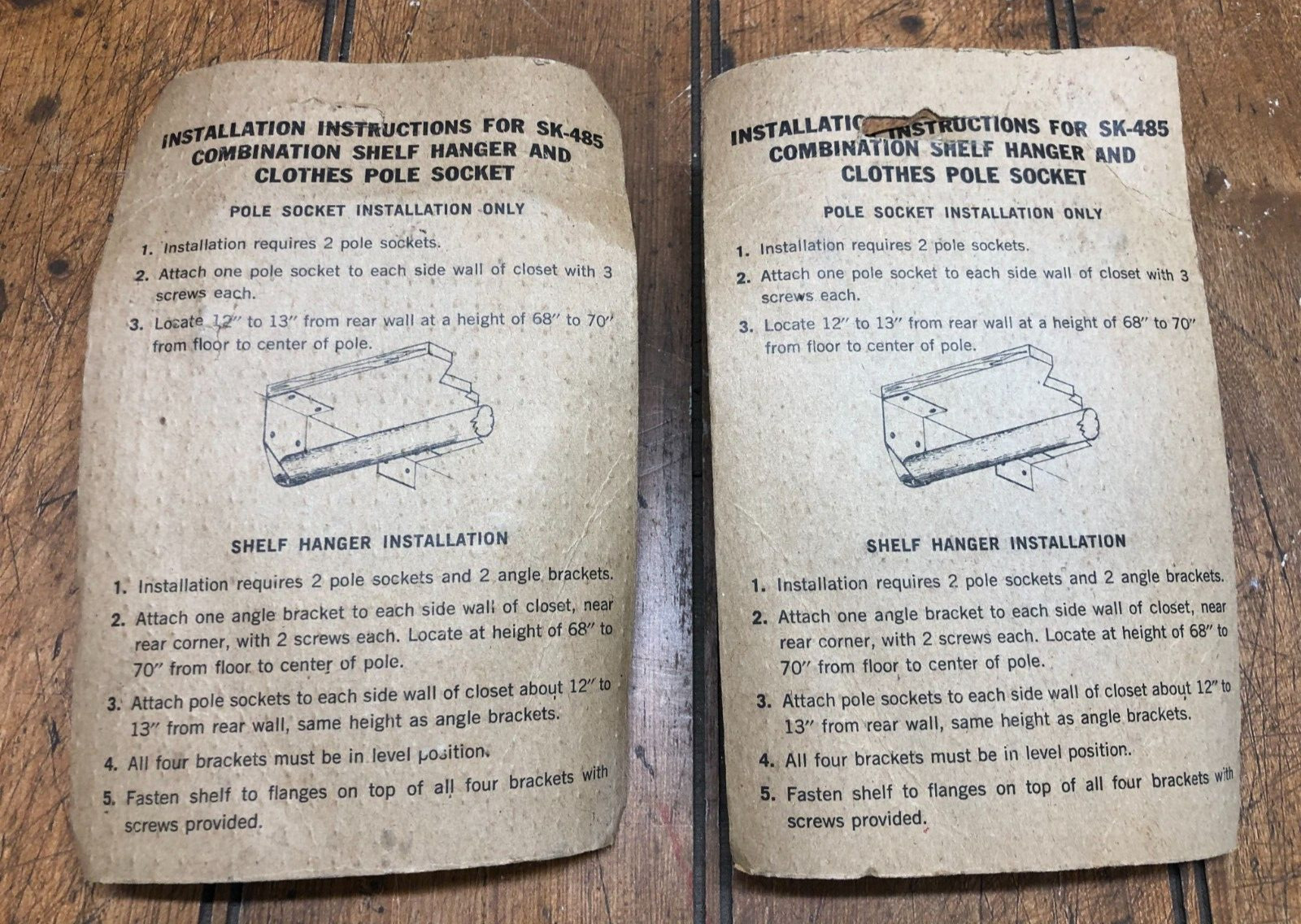 2 Pair New Vintage Ideal SK-485 Combination Shelf Hanger Clothes Pole Socket