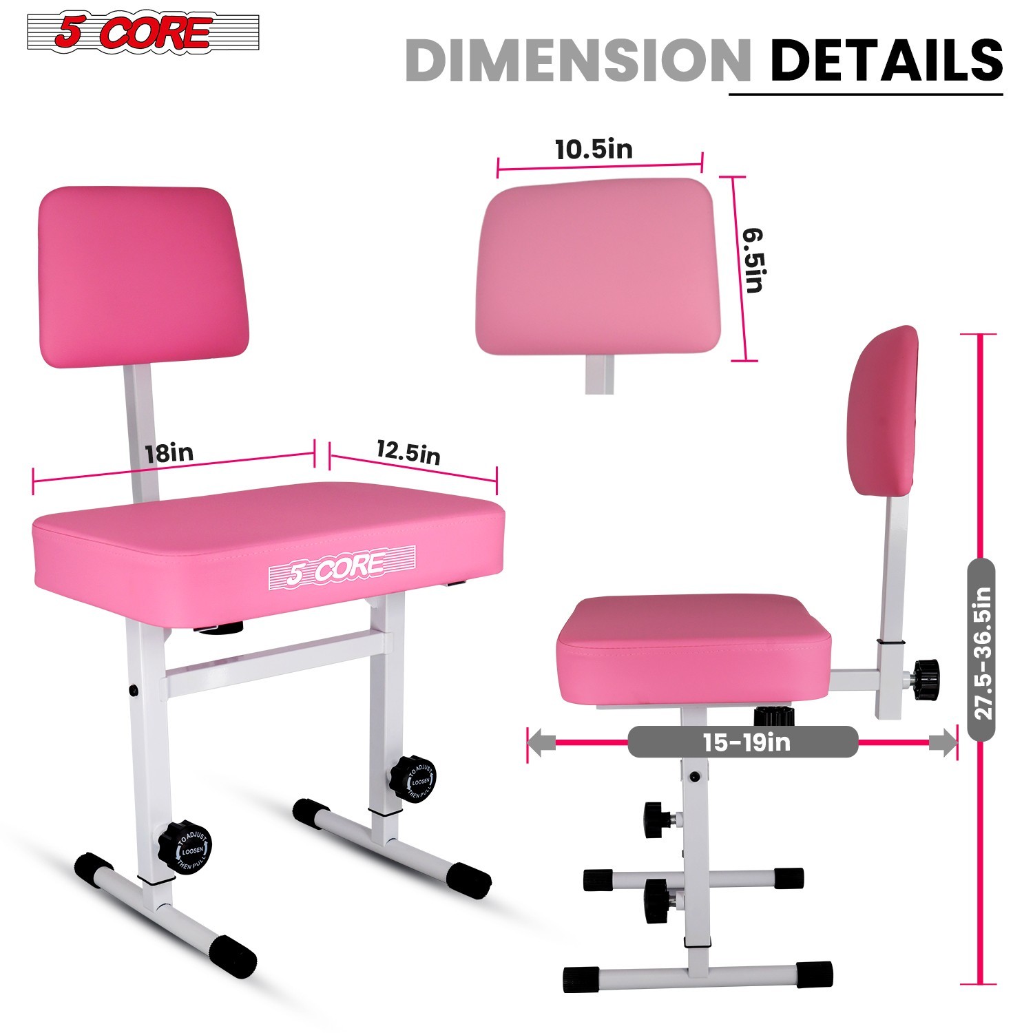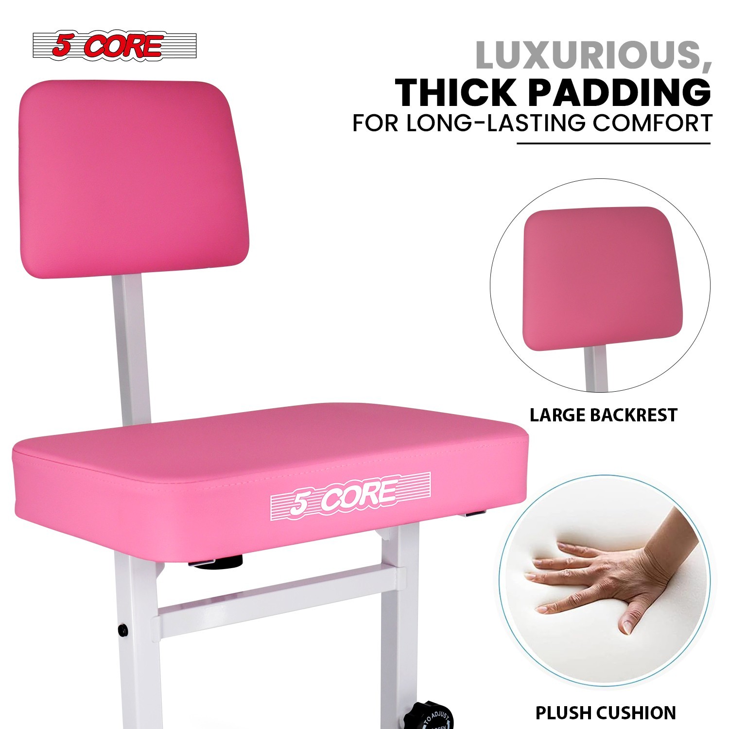 5 Core Piano Bench 3 Padded Cushion Stool w Backrest Heavy Duty Musician Chair