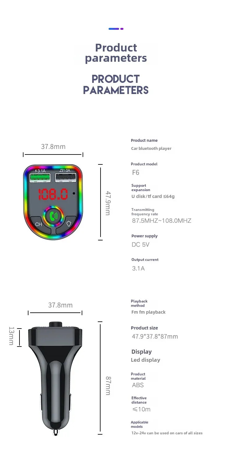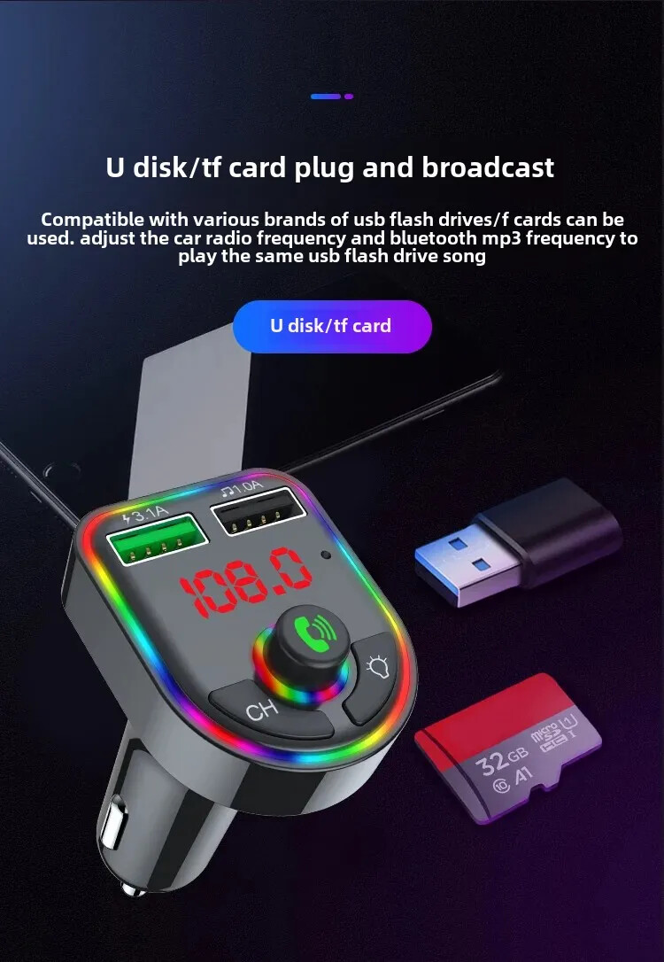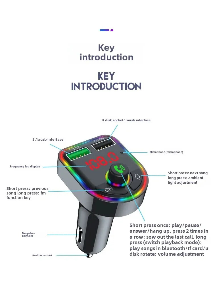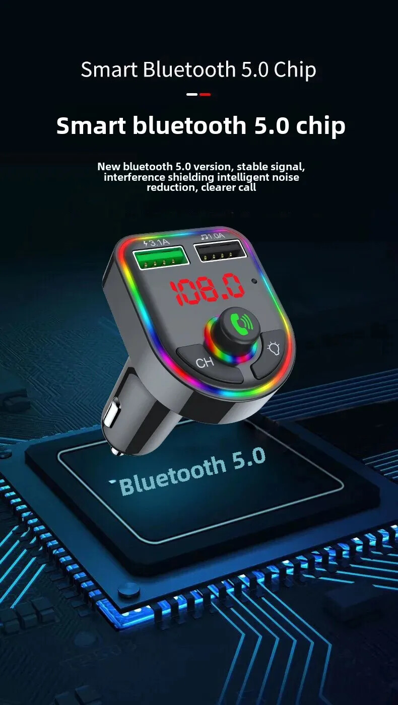 Car Wireless Bluetooth 5.0 FM Transmitter MP3 Music Player USB Charger Adapter