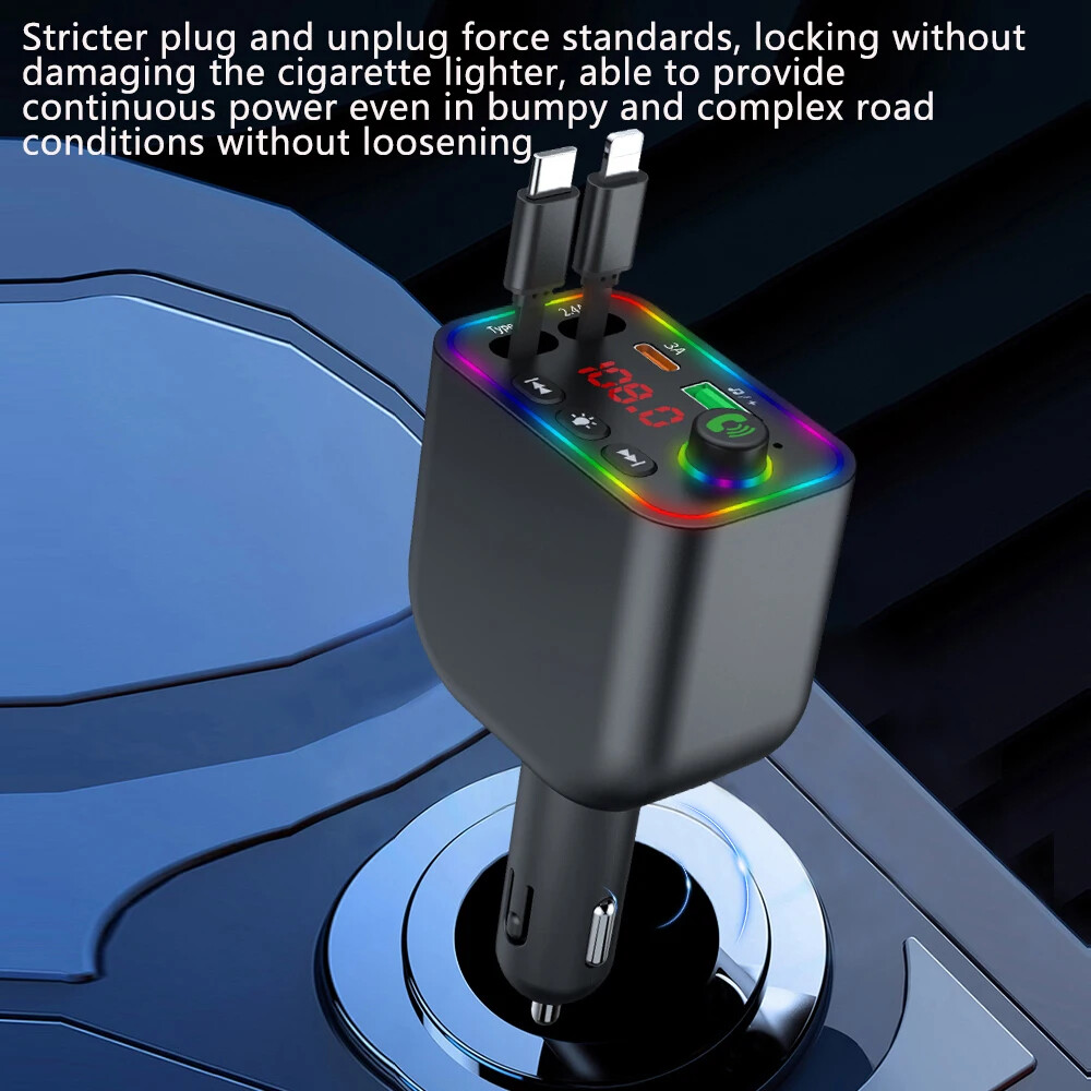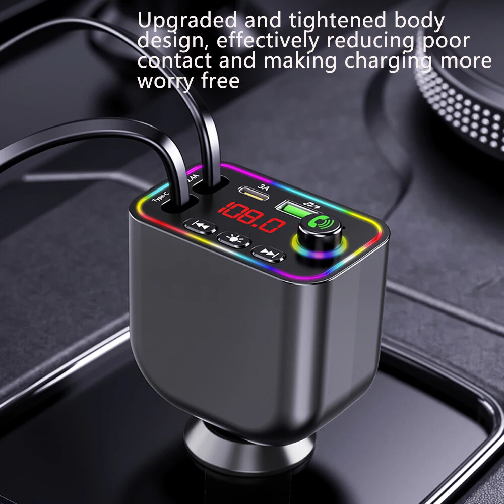 Car Fast Charger Adapter Bluetooth 5.3 Wireless FM Transmitter MP3 Player USB-C