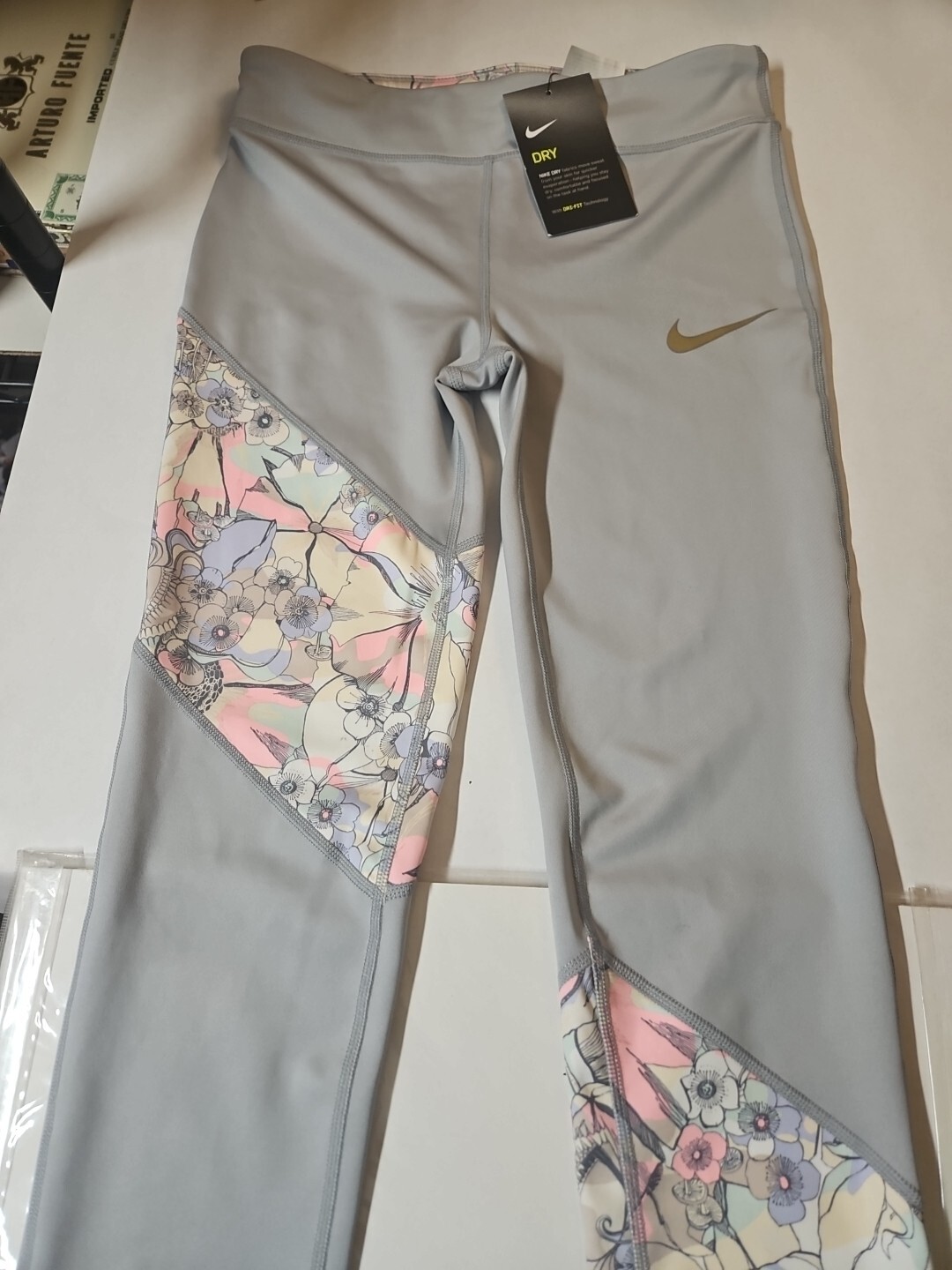 как выглядит The Nike One Floral and Grey Mid-Rise Tight Fit Girls Leggings, Size LG фото