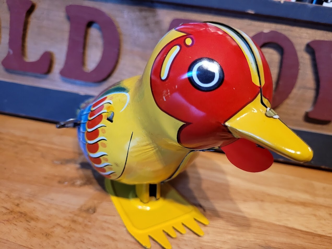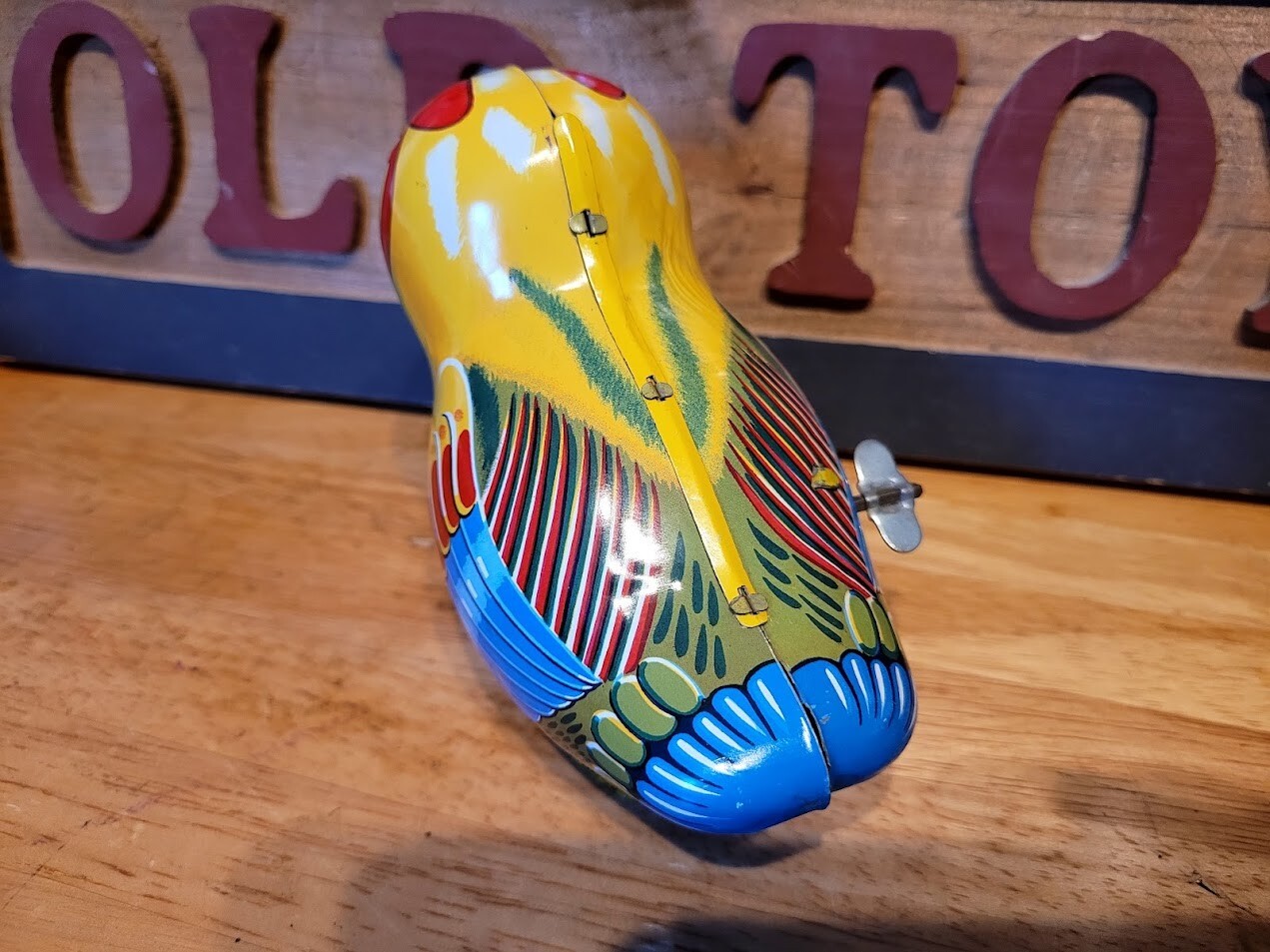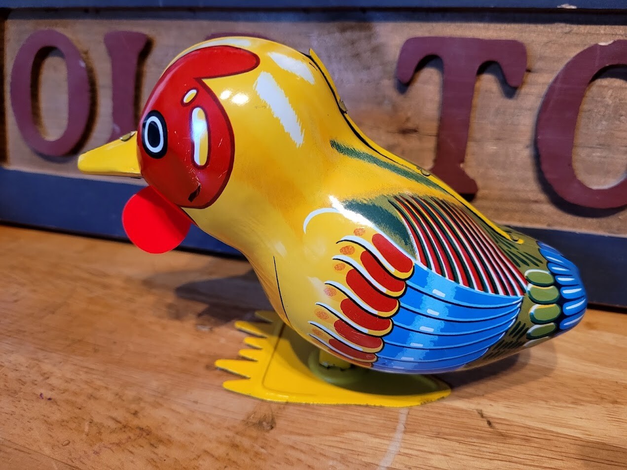 Vintage 1950'S TPS TIN LITHO MECHANICAL WIND UP COLORFUL PECKING BIRD