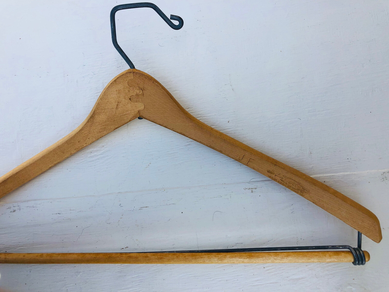 как выглядит Vintage Wooden Wishbone Suit Hanger John Thomas Batts Zeeland Michigan Wood фото