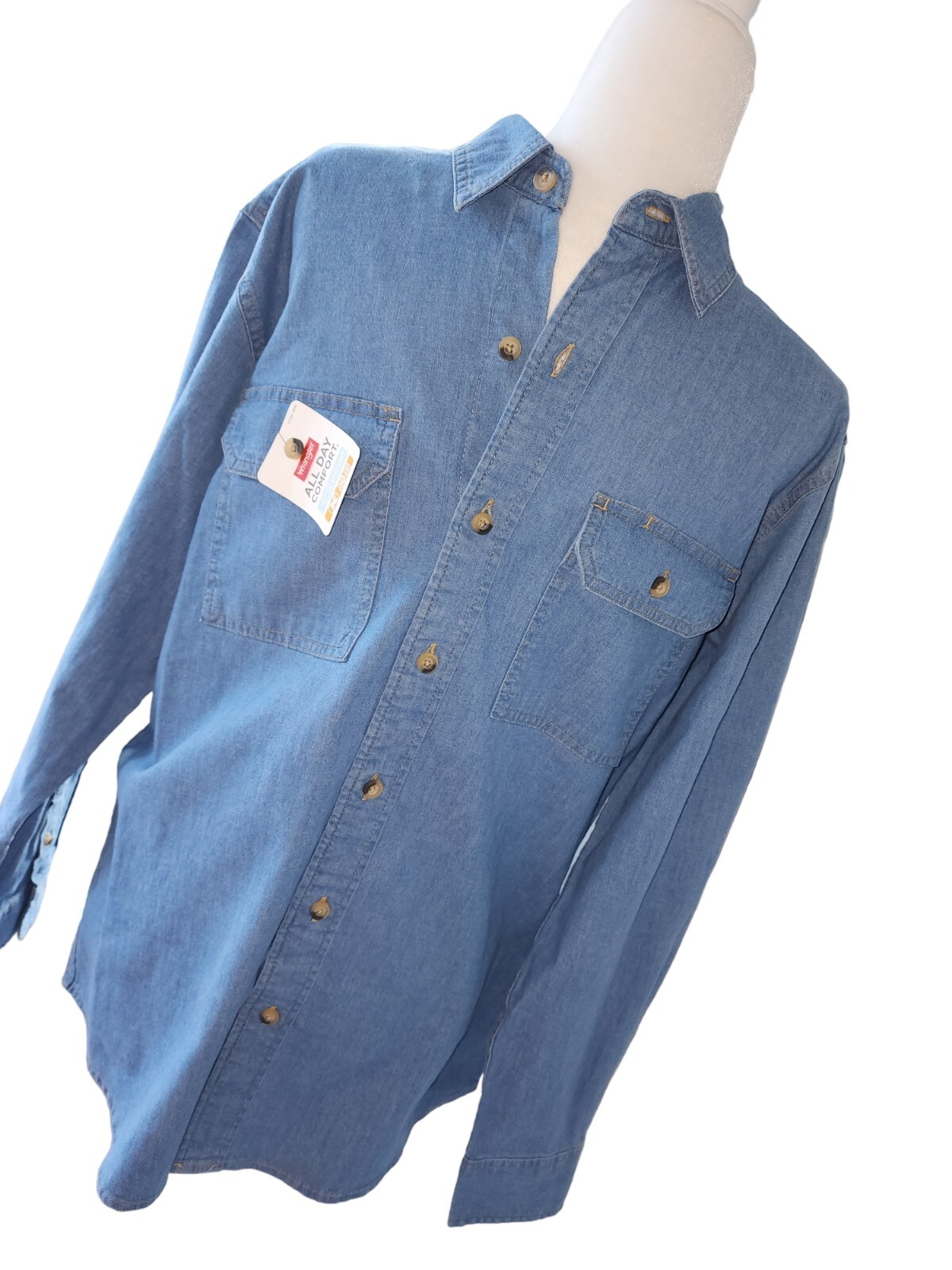 Wrangler Shirt Mens XL Extra Large Blue Long Sleeve Canvas Cotton Stretch NWT